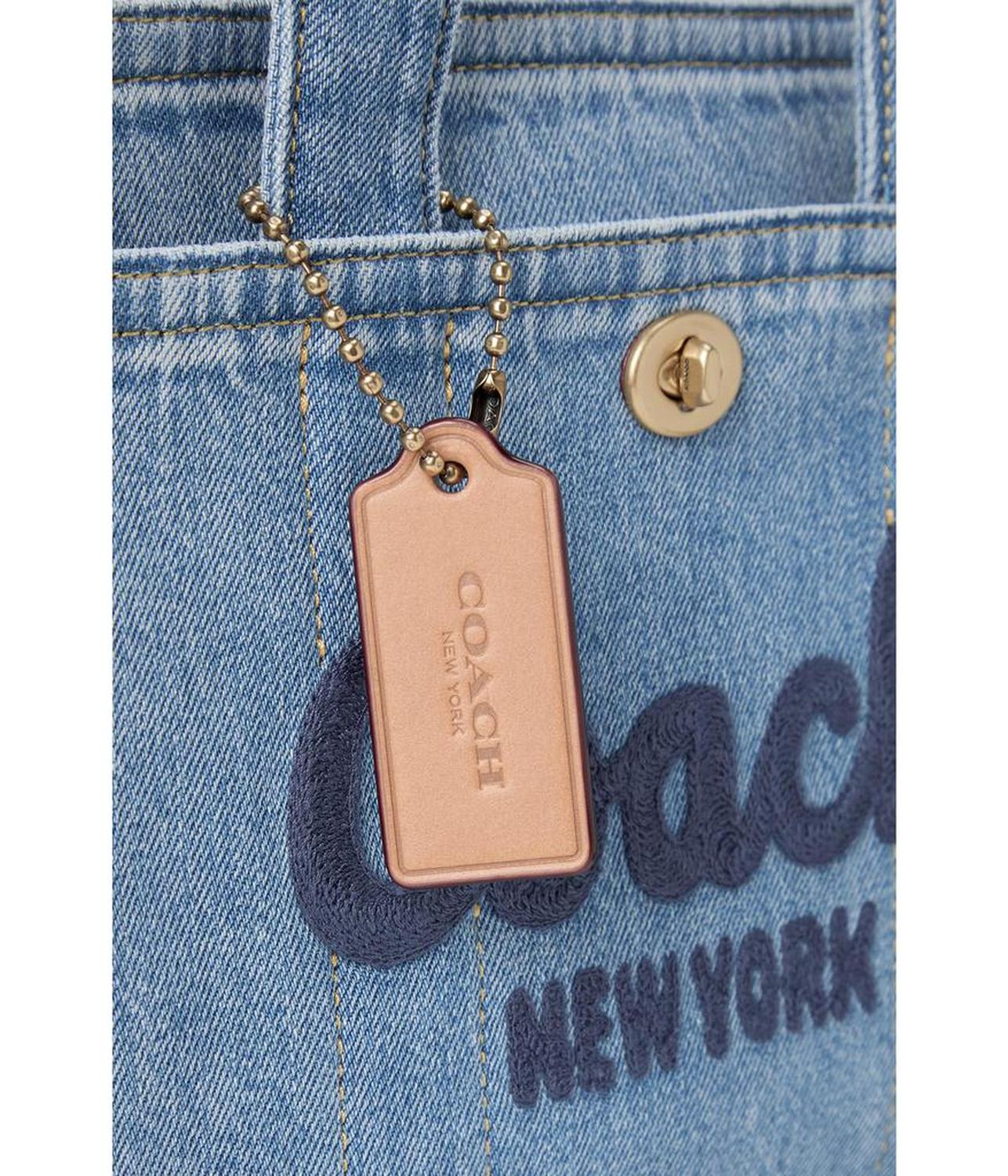 Complete your stylish looks by carrying the COACH™ Denim Cargo Tote 26 Bag. Crafted with luxurious denim and vachetta leather, the tote bag features two top grab handles and a detachable strap for effortless shoulder or crossbody wear. the bag is also designed with a zip-top closure, outside turn-lock & snap pockets, and can easily fit an iPad. The signature branding on the front gives the bag a touch of authenticity.