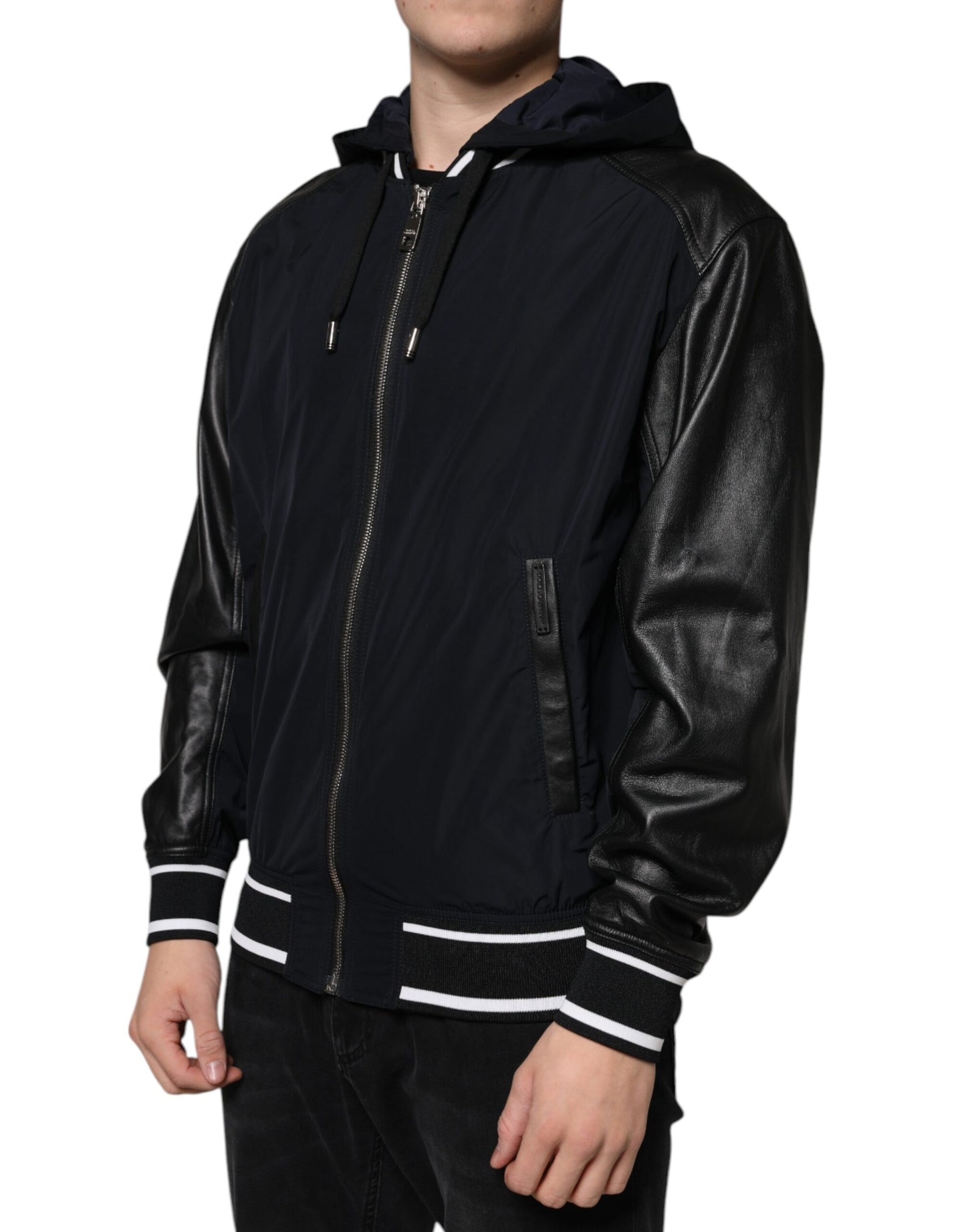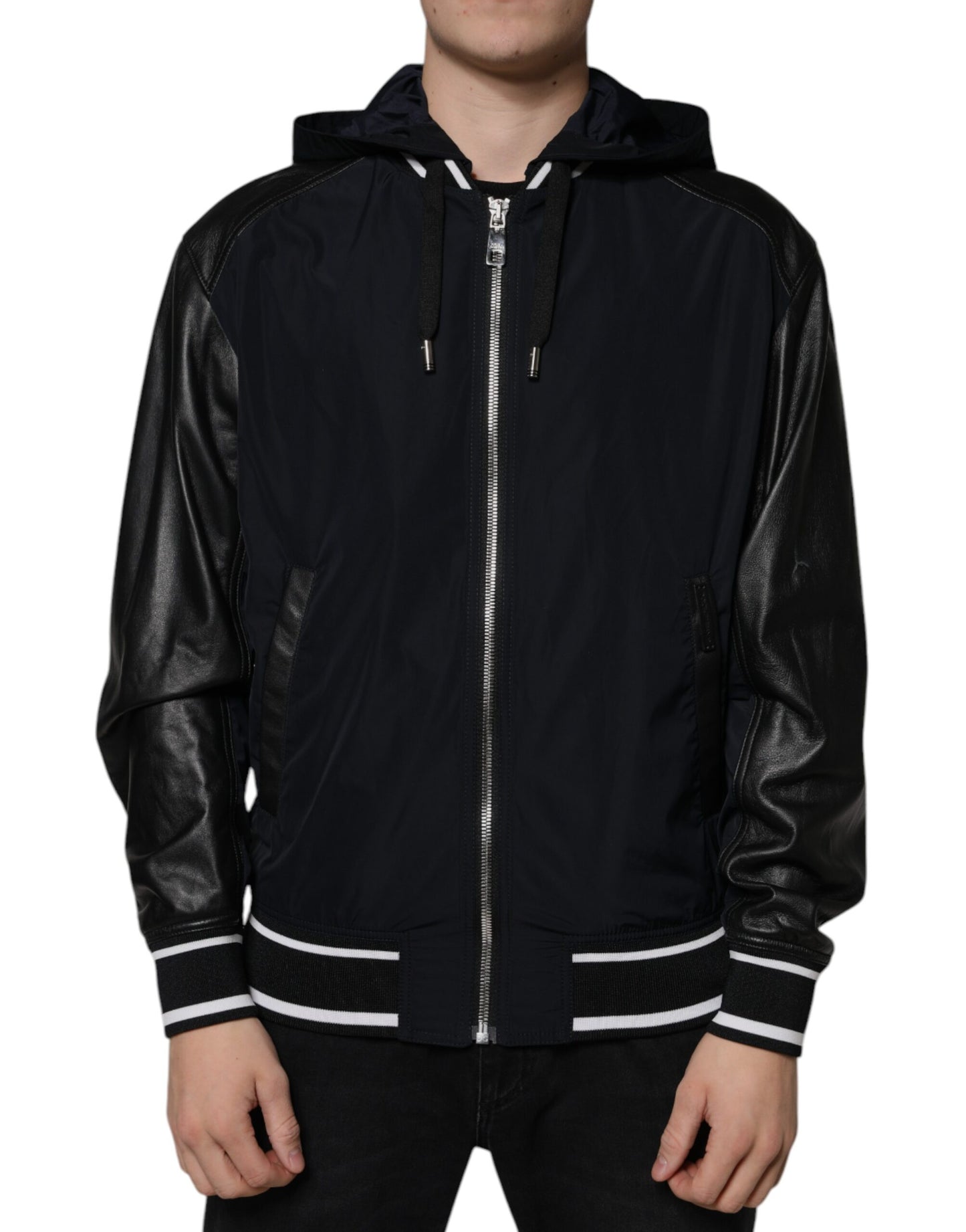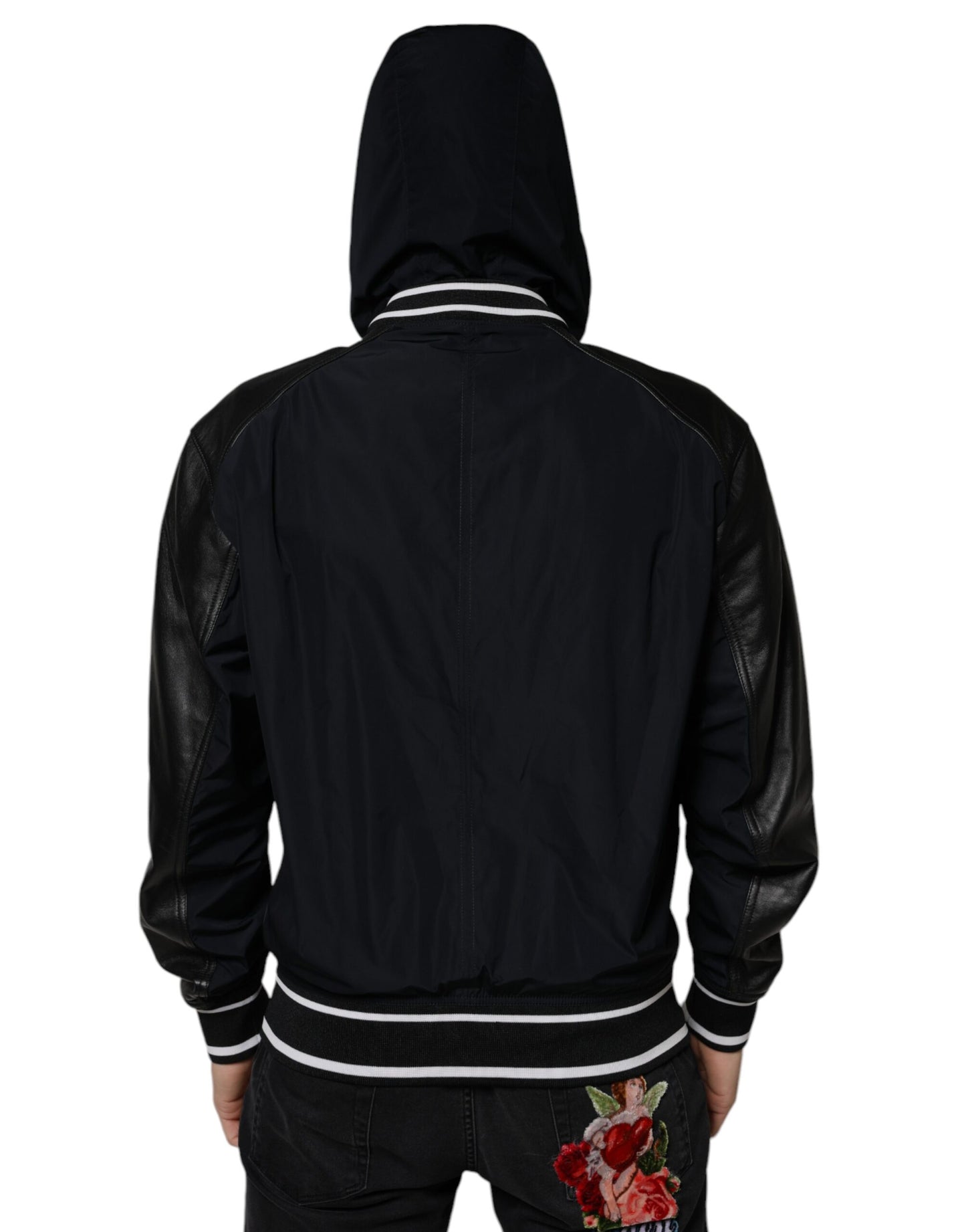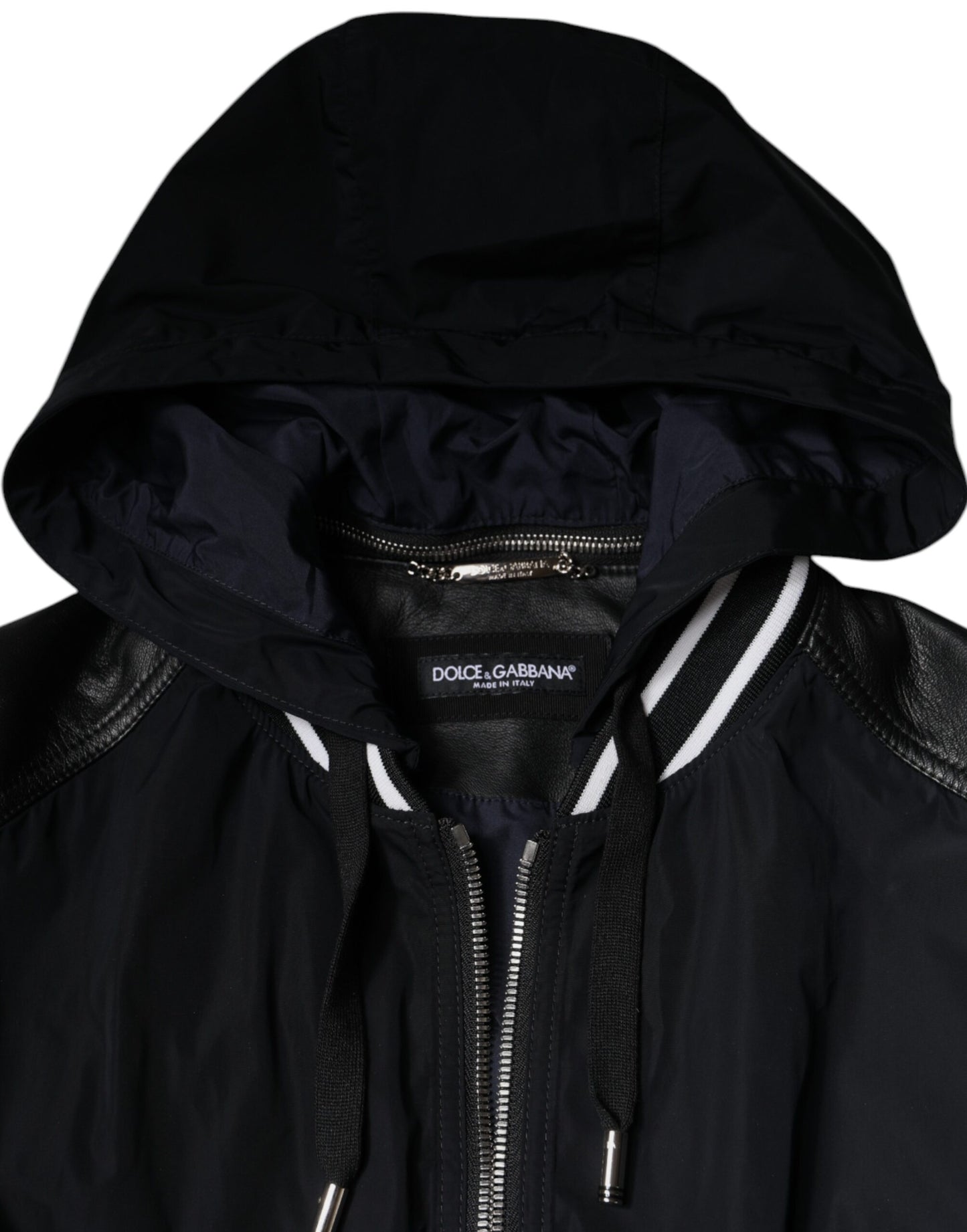 Dolce & Gabbana Black Hooded Full Zip Men Bomber Jacket