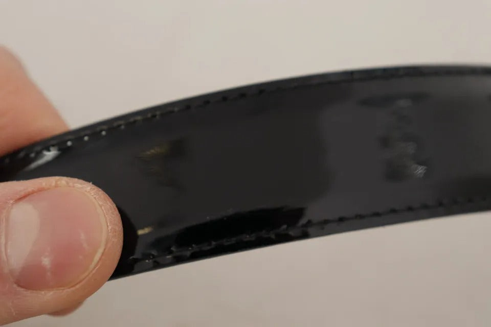 Dolce & Gabbana Black Leather Gold Metal Logo Engraved Buckle Belt