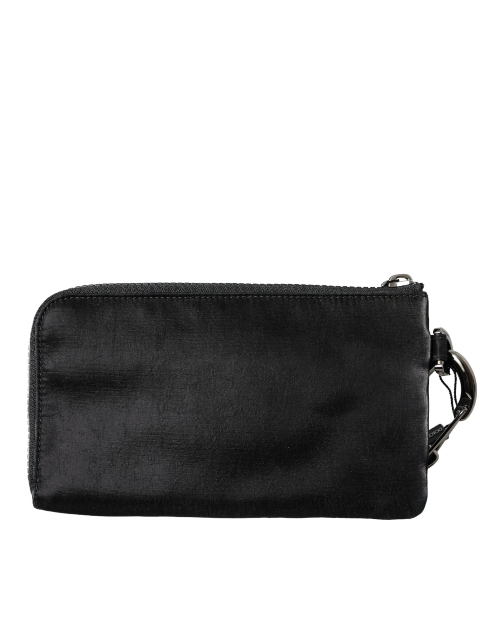 Dolce & Gabbana Black Nylon Logo Plaque Keyring Pouch Clutch Bag