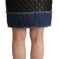 • Revel in the exquisite Italian craftsmanship with this Dolce & Gabbana high-waist mini skirt. Designed for the fashion-forward woman, this skirt is a blend of edgy and elegant, featuring a sleek black color with blue accents. The luxurious leather-cotton mix hugs your curves perfectly, while the zip and hook closure ensures a flawless fit. Complete with the iconic logo details, this piece is an investment in timeless style and superior quality.