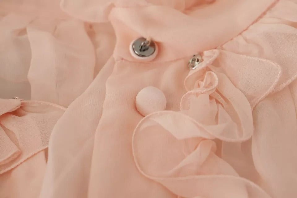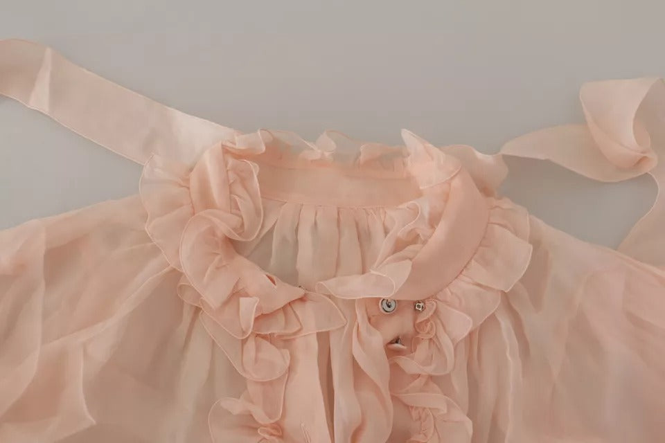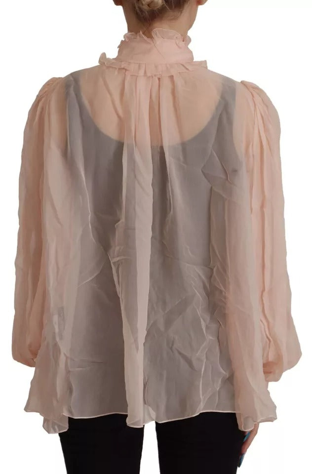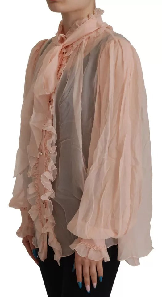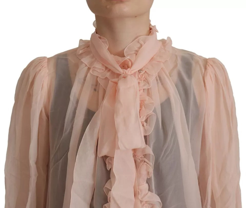 Dolce & Gabbana Light Pink Silk Ascot Collar Long Sleeves Top