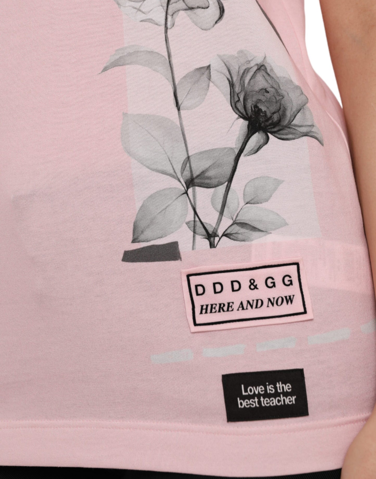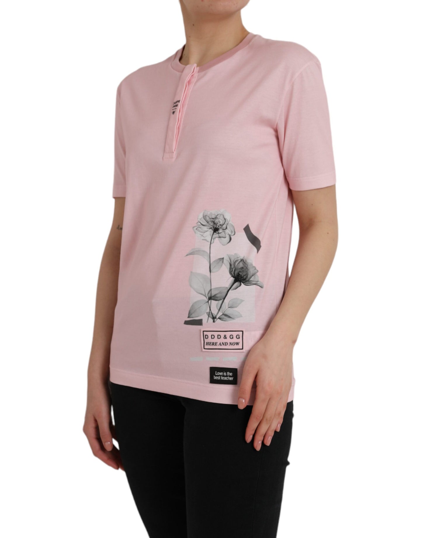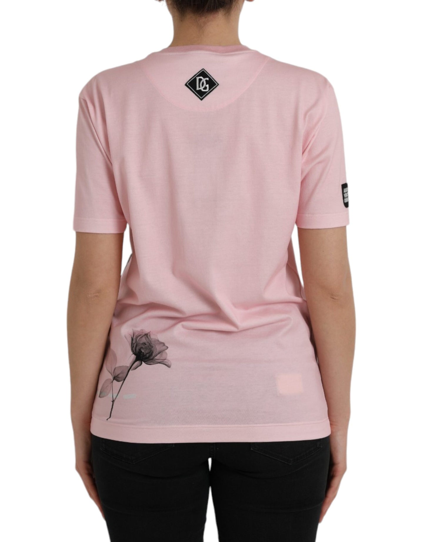 Dolce & Gabbana Pink Floral Print Cotton Short Sleeves T-shirt