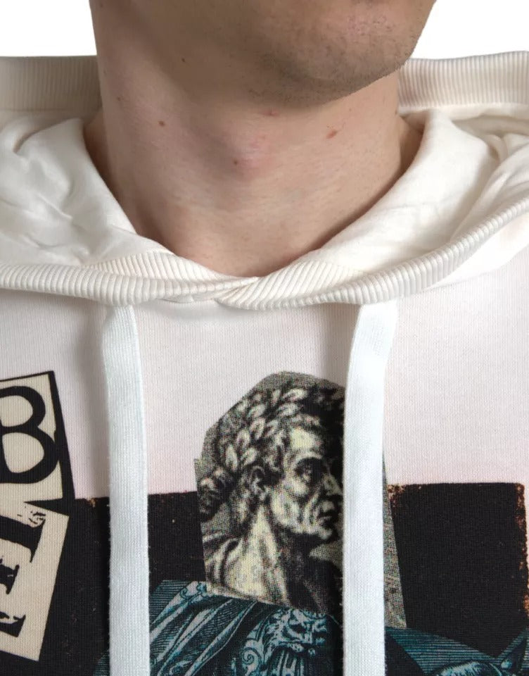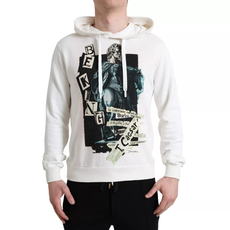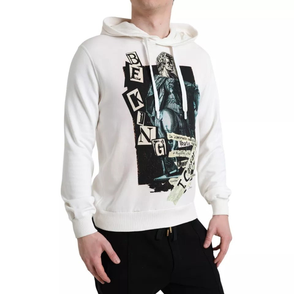 Dolce & Gabbana White Caesar Cotton Hooded Pullover Sweater