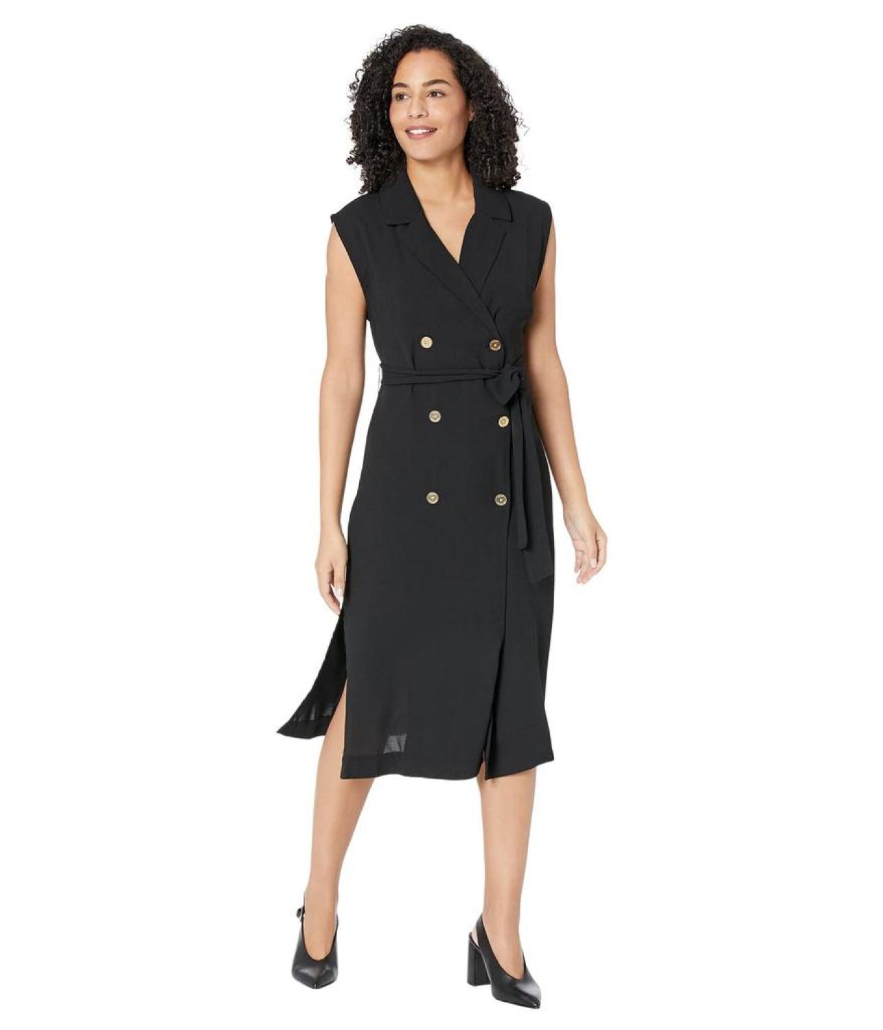 • Take your casual style a notch up with the easy-going style of MICHAEL Michael Kors® Drapey Crepe Trench Dress.