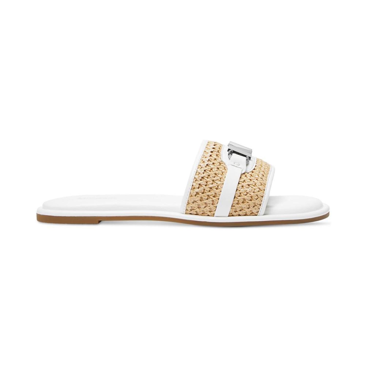 • The Ember sandals feature a wide vamp that's adorned with a miniature MICHAEL Michael Kors charm.