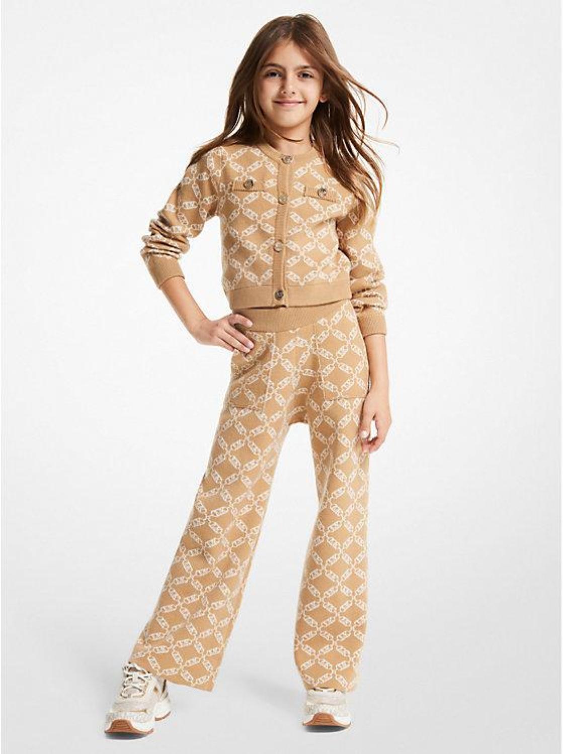 Your little one will feel confident and comfortable on the playground in these stylish track pants. Covered in our Empire Logo print, this sport-luxe pair is crafted from a plush knit for mobility and features two practical front pockets. Dress them up with the matching cardigan for school or family dinners.