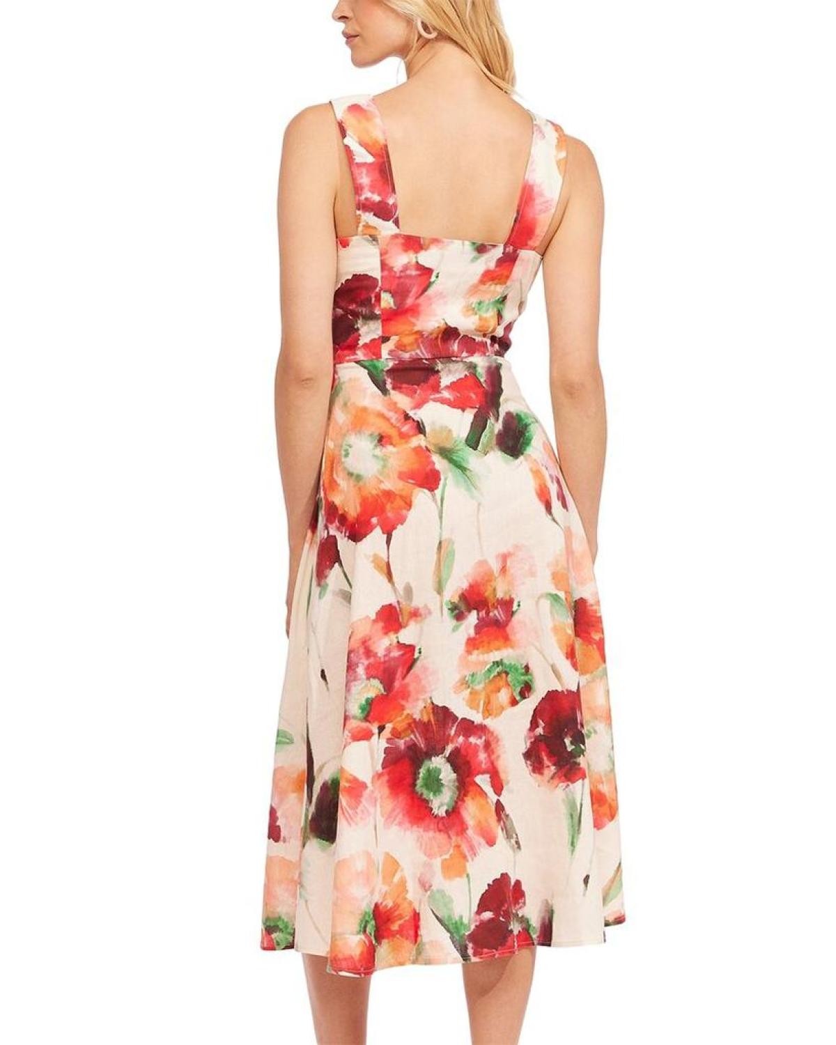 Introducing the stunning Eva Franco Hettie Dress, a must-have addition to your wardrobe for the upcoming season. This midi dress features a Fit And Flare silhouette, a straight neckline, thick tank straps, and a side split for added flair. The dress is adorned in a beautiful Wild Poppies color/pattern that is sure to stand out. Made from 100% cotton with a 100% polyester lining, this dress is both stylish and comfortable. With a front button closure and a length of approximately 44 inches from shoulder to hem, this dress is perfect for any occasion. Handmade in the USA, the Eva Franco Hettie Dress is a true statement piece that is sure to turn heads wherever you go.
