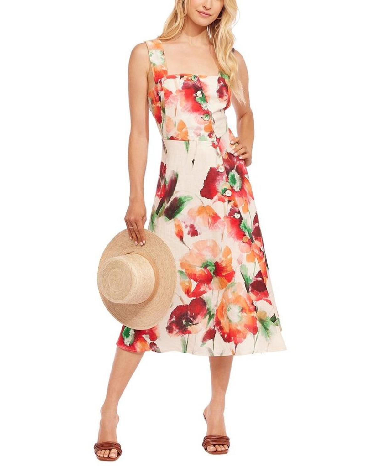 • Introducing the stunning Eva Franco Hettie Dress, a must-have addition to your wardrobe for the upcoming season. This midi dress features a Fit And Flare silhouette, a straight neckline, thick tank straps, and a side split for added flair. The dress is adorned in a beautiful Wild Poppies color/pattern that is sure to stand out. Made from 100% cotton with a 100% polyester lining, this dress is both stylish and comfortable. With a front button closure and a length of approximately 44 inches from shoulder to hem, this dress is perfect for any occasion. Handmade in the USA, the Eva Franco Hettie Dress is a true statement piece that is sure to turn heads wherever you go.