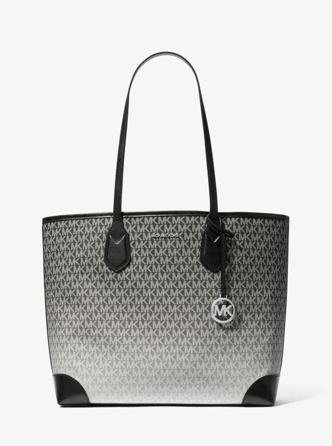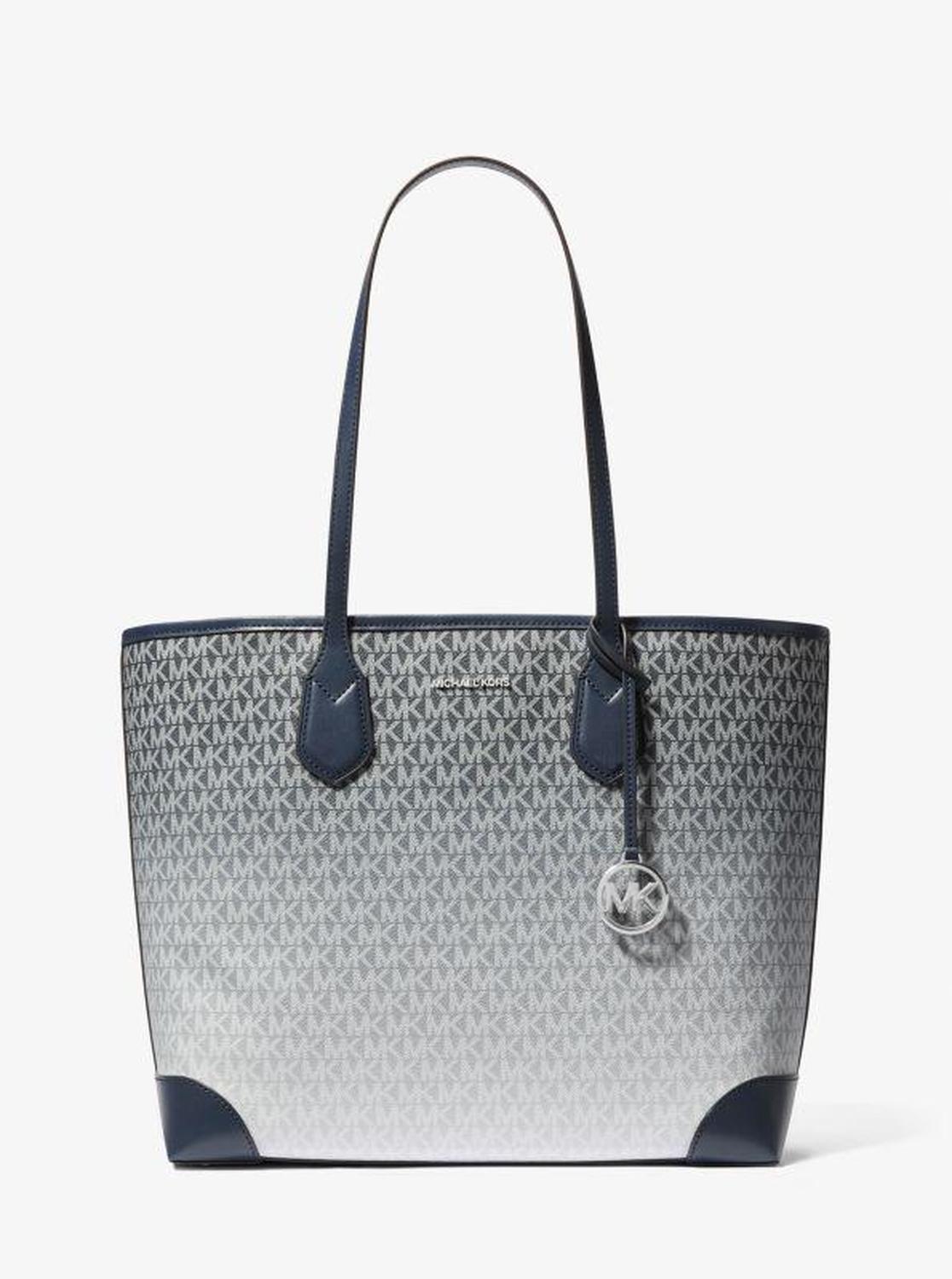 • Our Eva tote bag is a versatile, seasonless style that’s all about understated luxury. Rendered in our Signature logo-print canvas with an ombré finish, this carryall has a spacious interior designed to stow a laptop, plus other essentials for a busy day or long-haul flight.