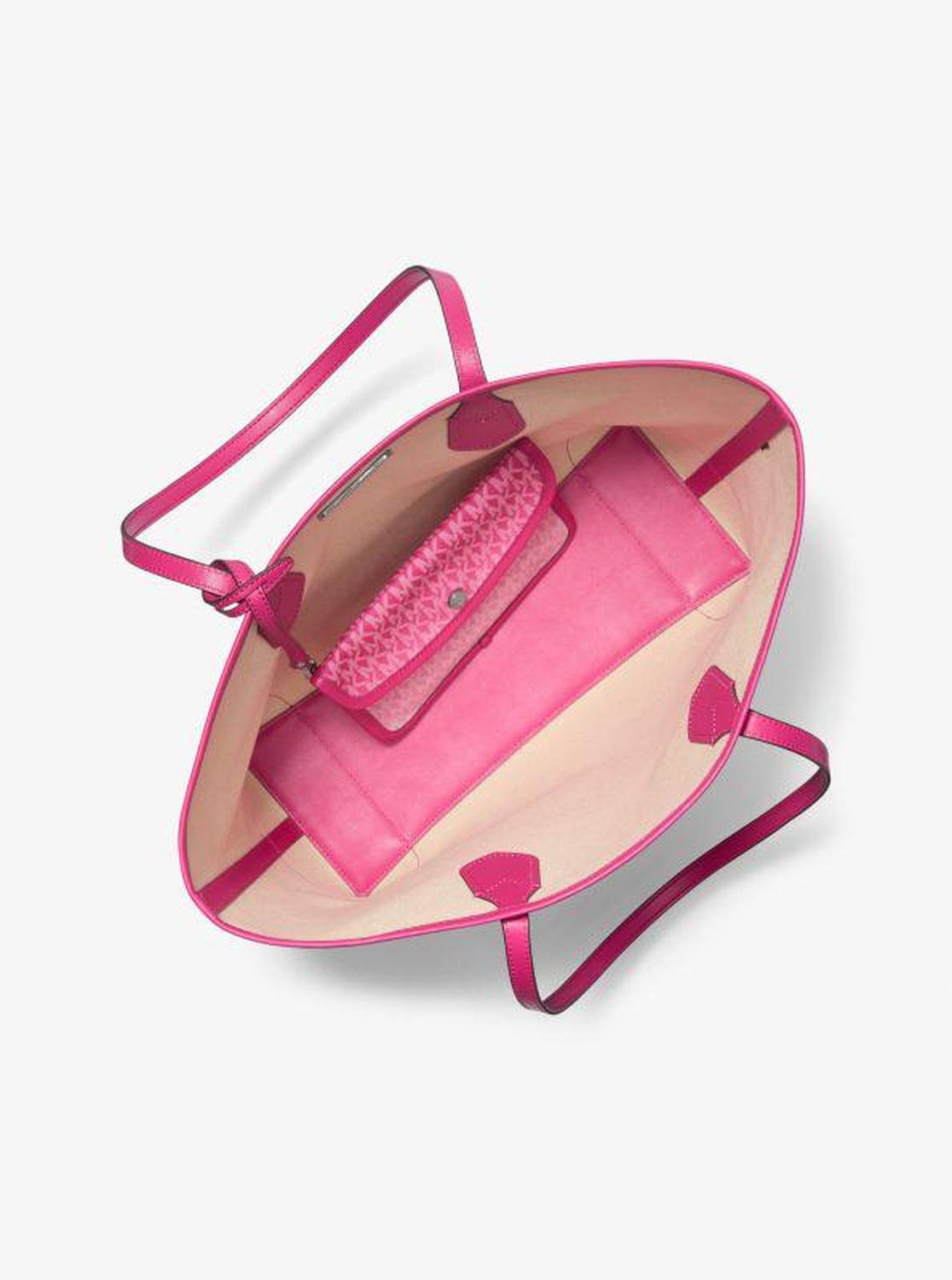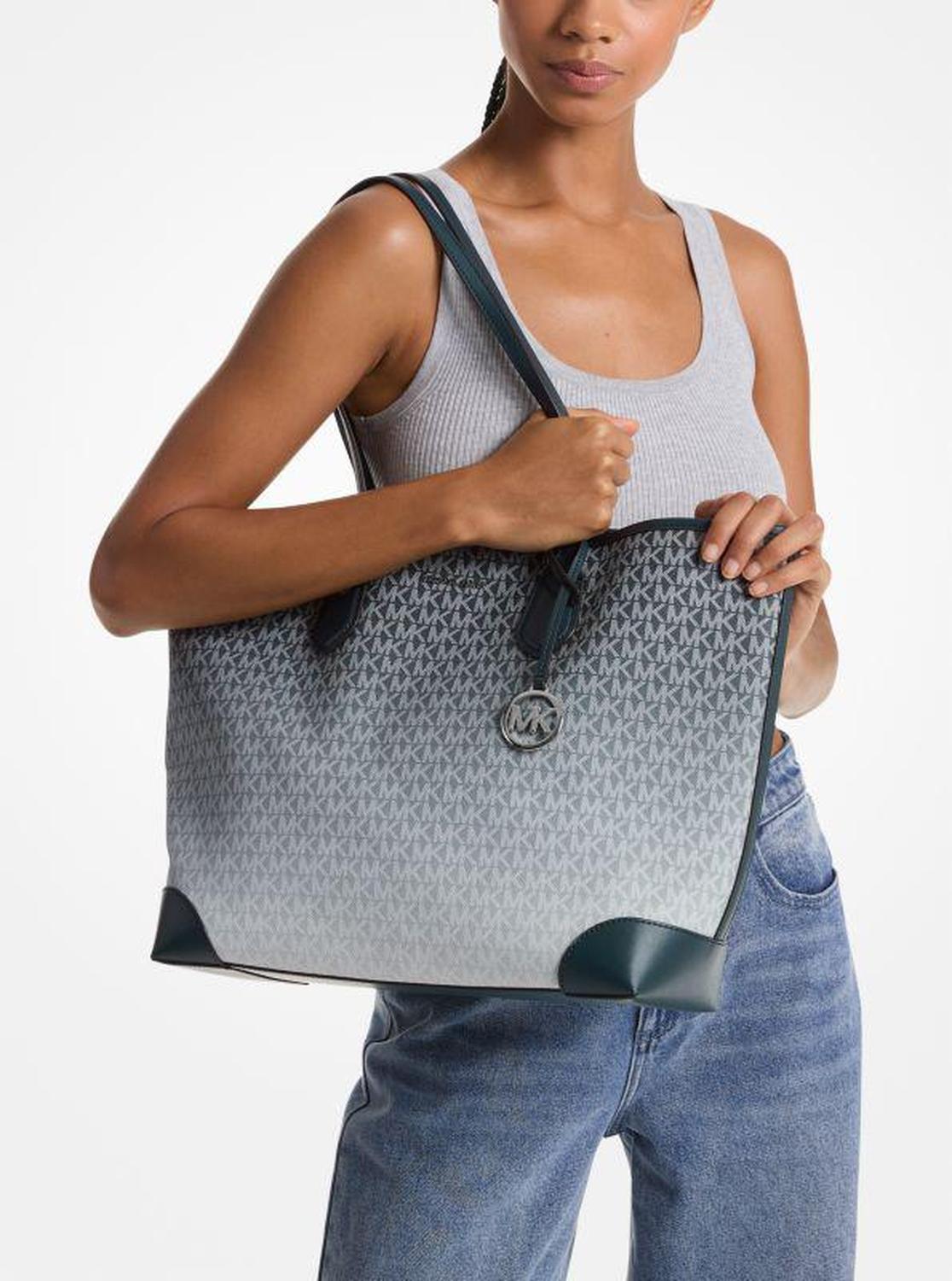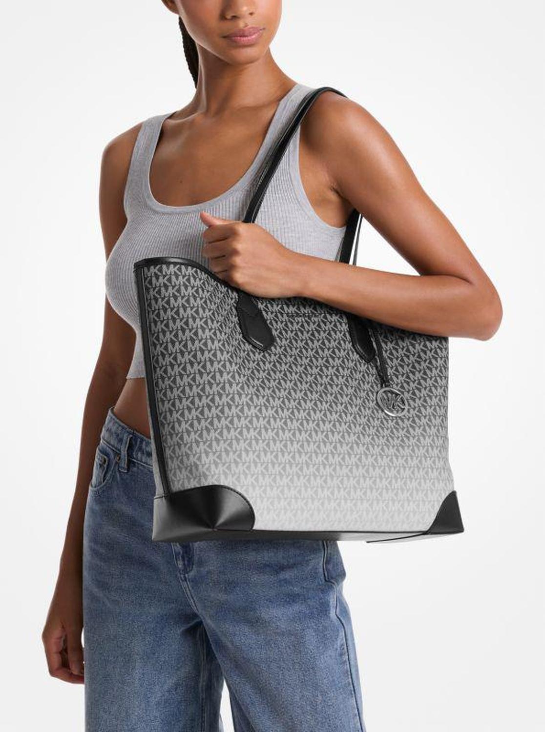Our Eva tote bag is a versatile, seasonless style that’s all about understated luxury. Rendered in our Signature logo-print canvas with an ombré finish, this carryall has a spacious interior designed to stow a laptop, plus other essentials for a busy day or long-haul flight.