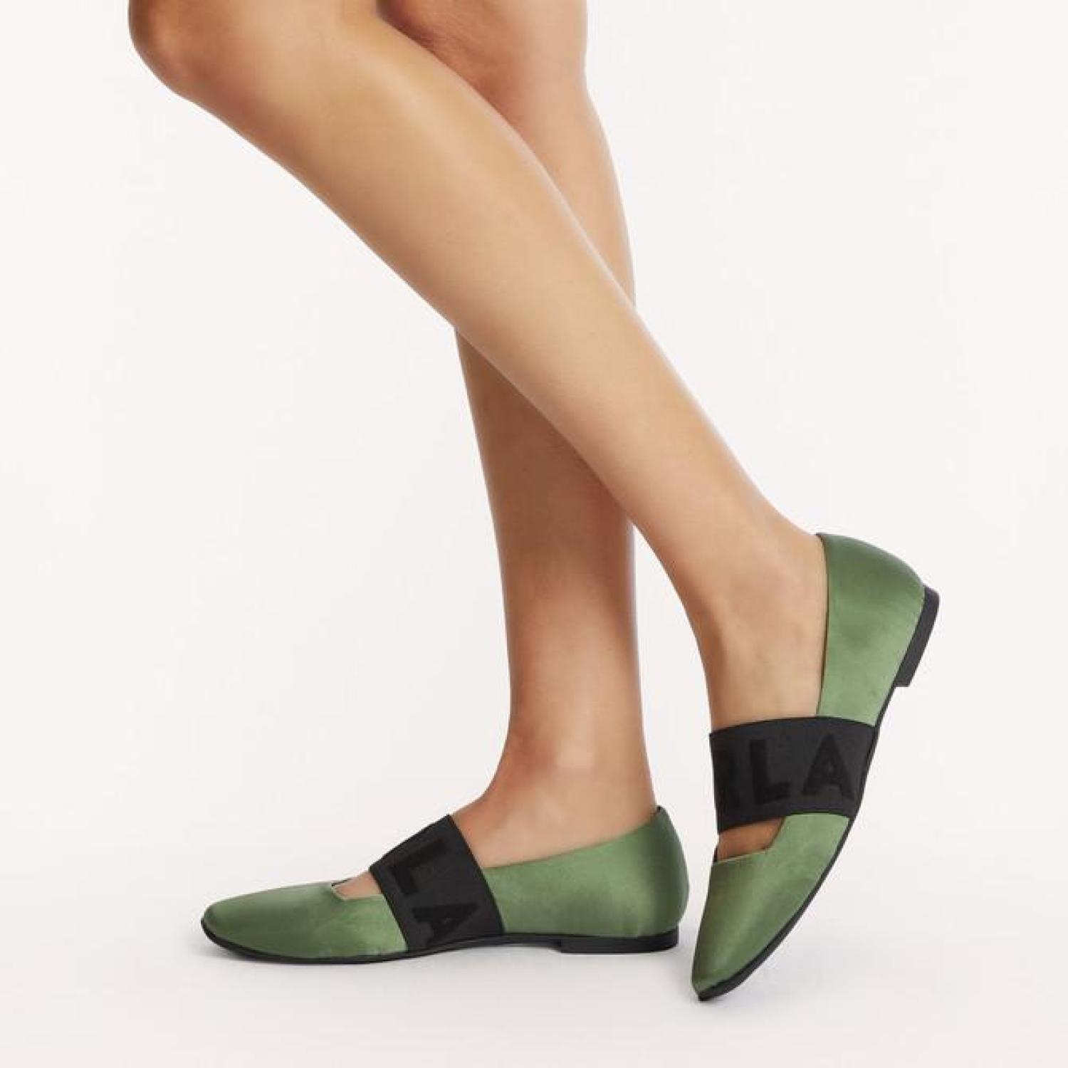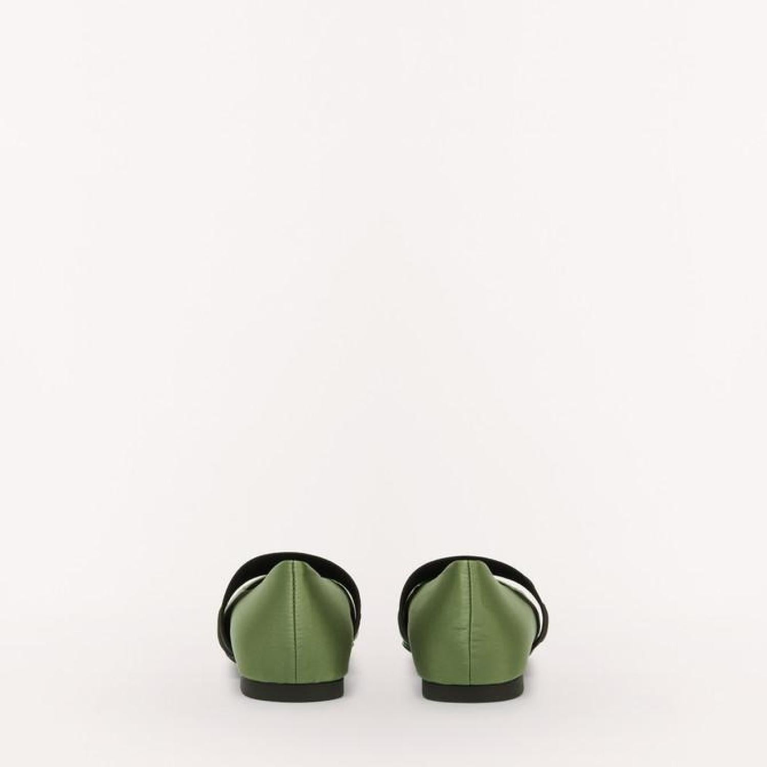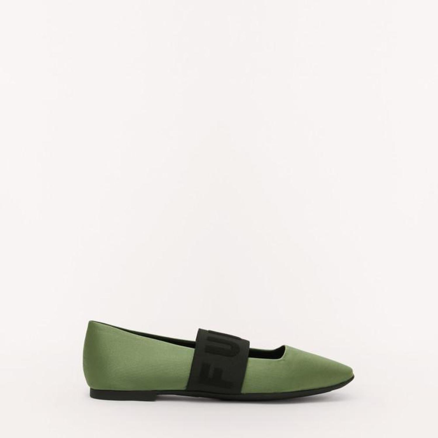 • Furla Iris is an elegant satin ballerina pump. The model is embellished with an elasticated black grosgrain strap with a maxi Furla logo enveloping the instep. The rubber sole of the shoe guarantees comfort throughout the day.