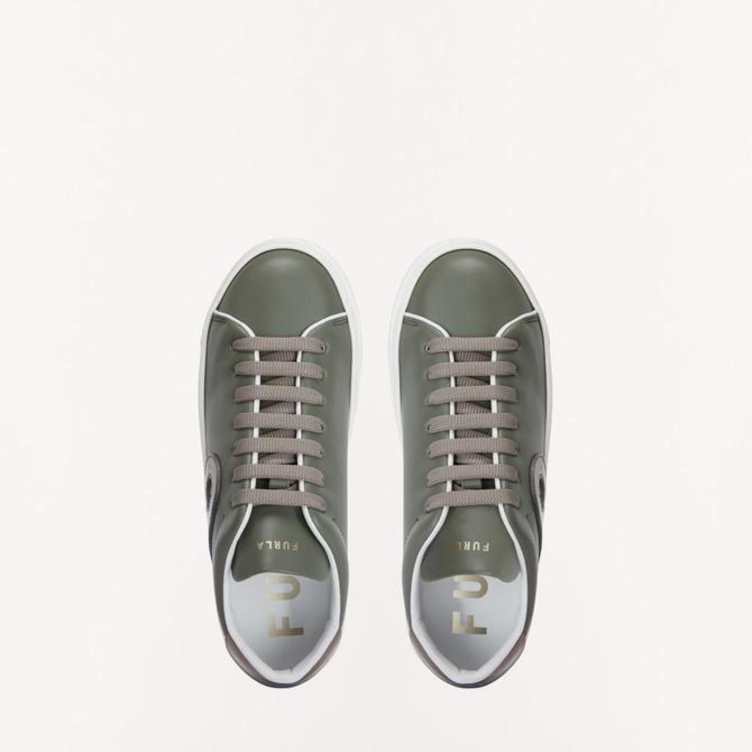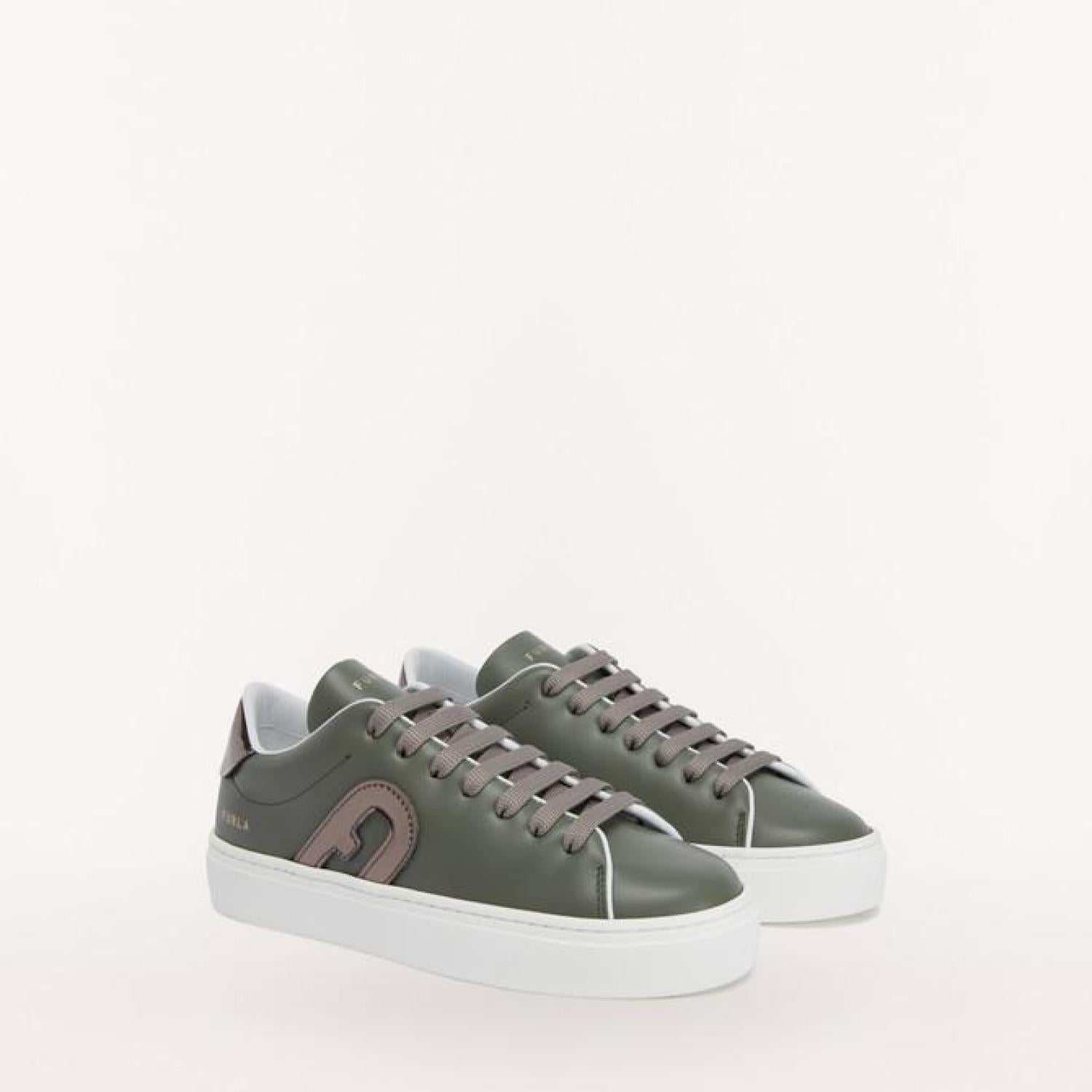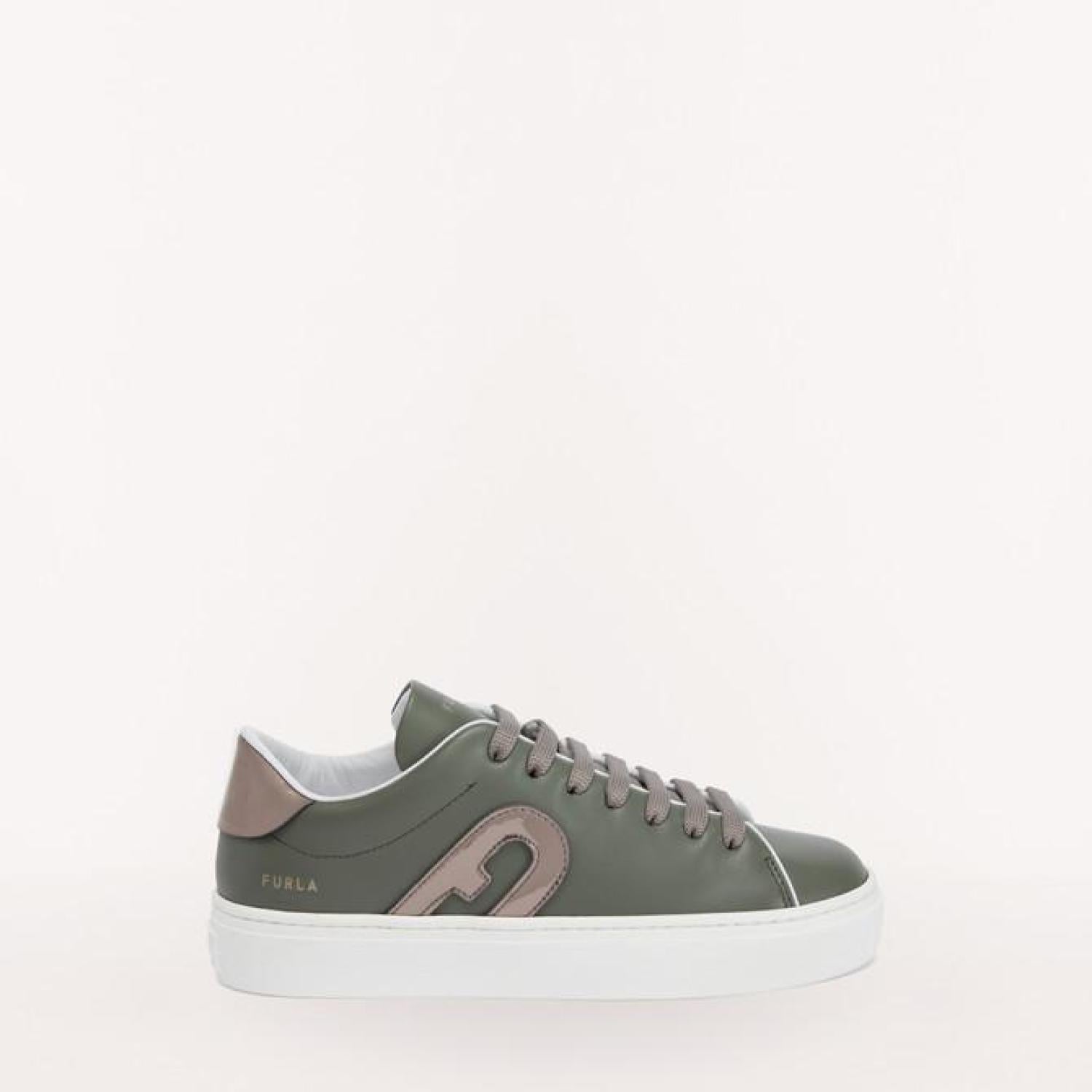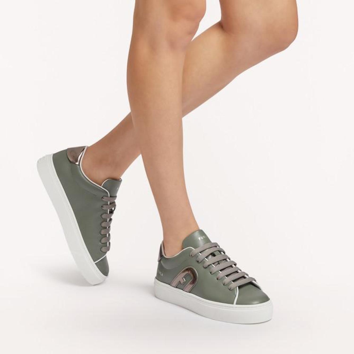 • The sporty feel of these Furla Joy sneakers makes them a must-have for days strolling around the city. With a soft leather upper and different interpretations of the Furla logo on the tongue, sides and the back of the sole, these sneakers are elegantly embellished with patent leather details.