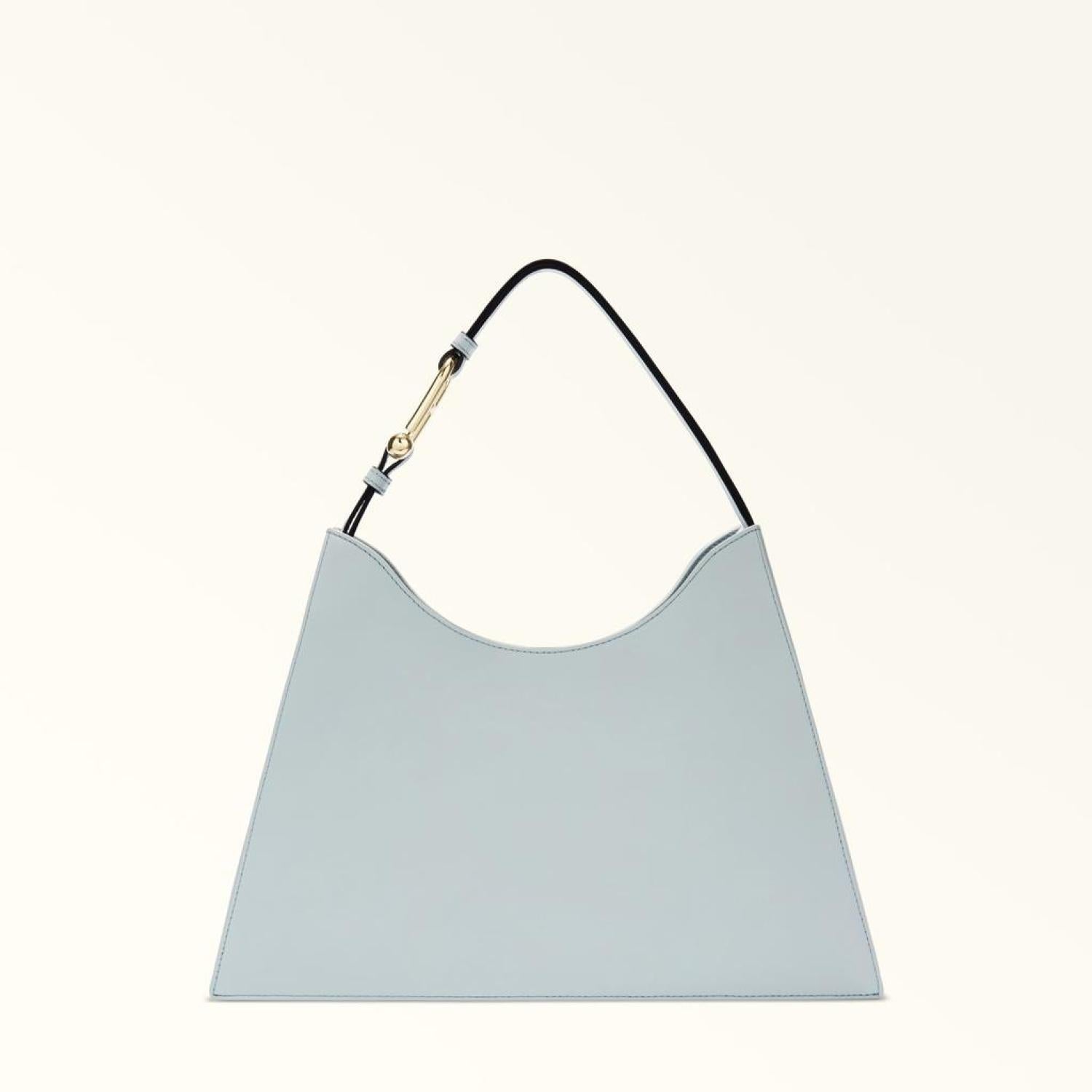 • This stylish large Furla Nuvola hobo bag boasts geometric lines and delicate design, and is styled in soft leather with a natural grained finish. Spacious and well-organised inside, it is arranged with two compartments with a magnetic fastening, and a zipped central pocket to safely store your smaller personal items. Carry it by hand or on the shoulder, and enjoy showing off the new interpretation of Arcosfera hardware, which brings the iconic Furla Arch logo together with the original round element of the brand.