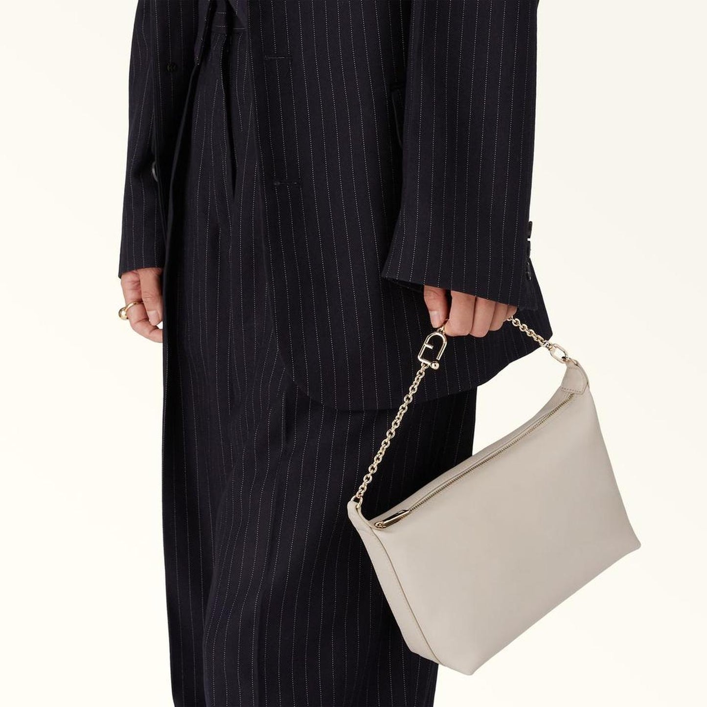 The perfect crossbody for any time of day, this Furla Nuvola mini bag is styled in luxurious smooth leather. Reinterpreting the timeless and classic lines of the traditional hobo bag with a modern accent, it features an elegant matching shoulder strap and a chain detail embellished with the Arcosfera logo, for sought-after style.