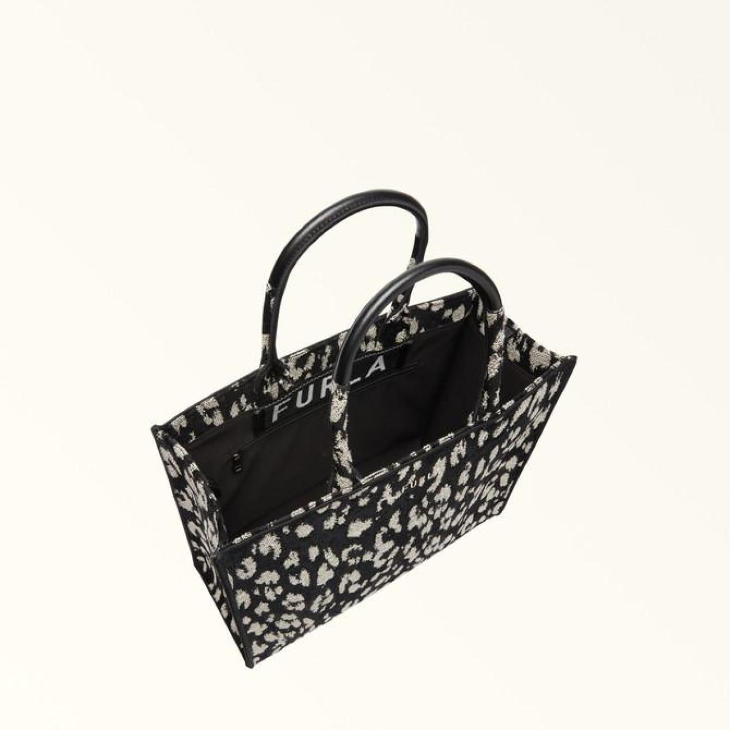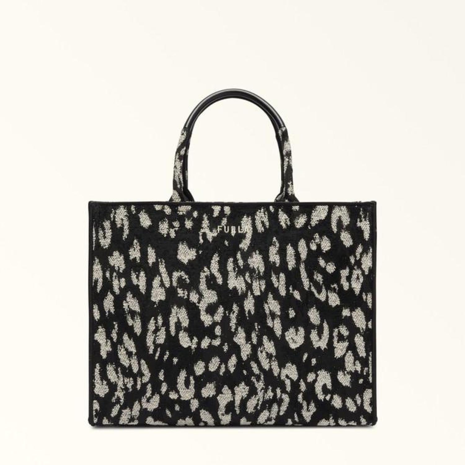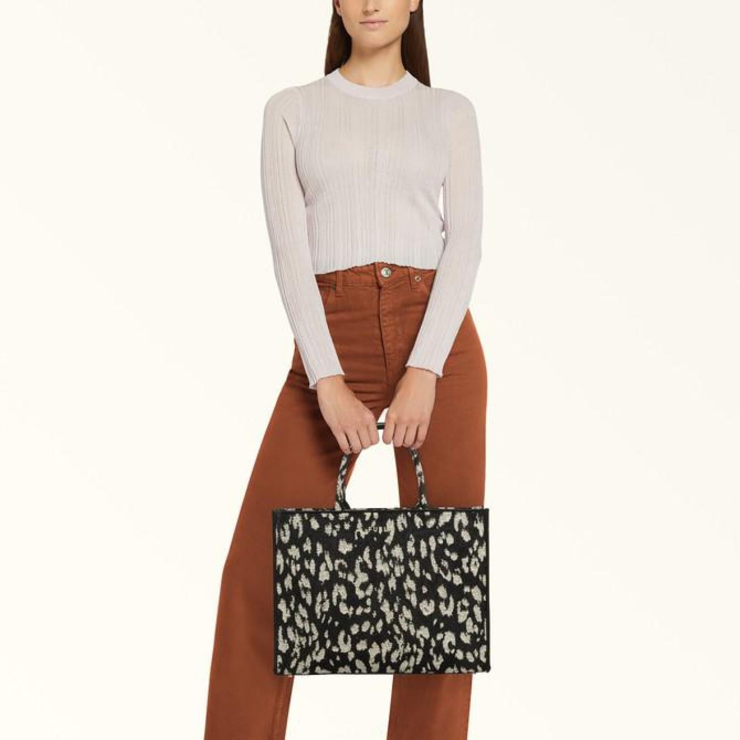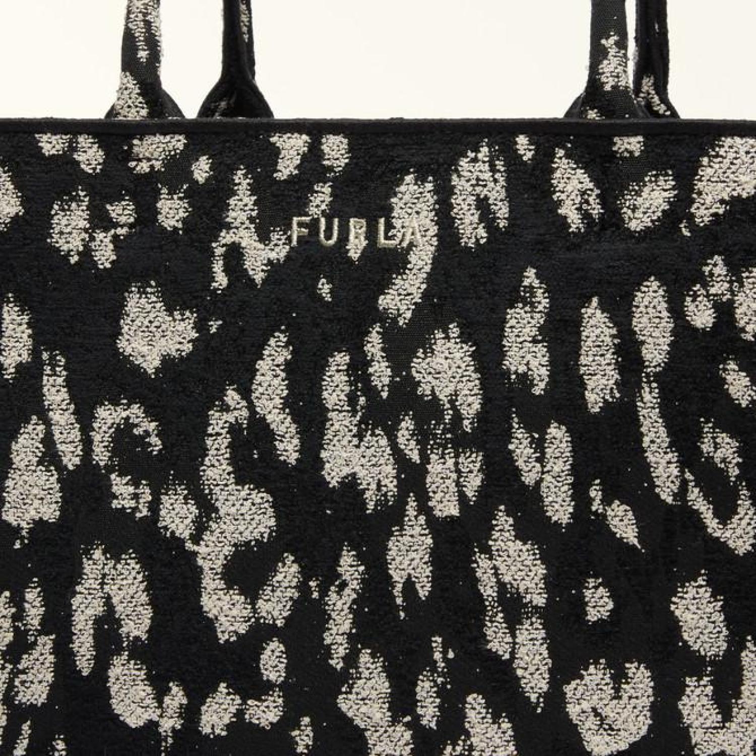 This contemporary large Furla Opportunity tote is crafted in jacquard fabric with a leopard print with luxurious smooth leather matching handles, so it can be carried by hand. With its sizeable dimensions and spacious interior, it is designed to carry everything you may need, for any occasion, leisure or travel.
