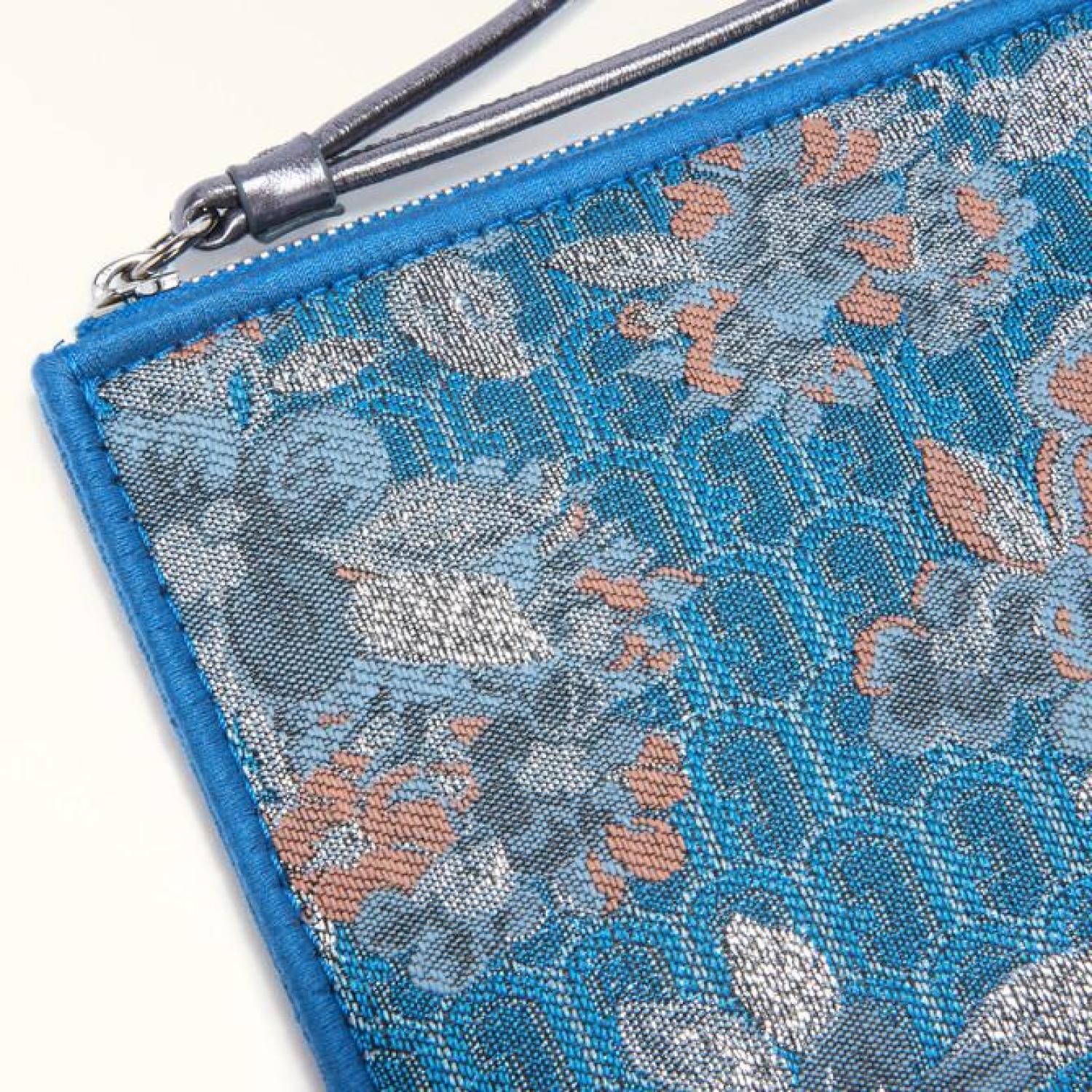 From day to night, this exclusive Furla Opportunity envelope bag is perfect for holding all the small essentials and personal items you need. Crafted from jacquard fabric with an elegant Teatro motif, its small and slim size makes it ideal for using as a clutch or sliding into a bigger bag.