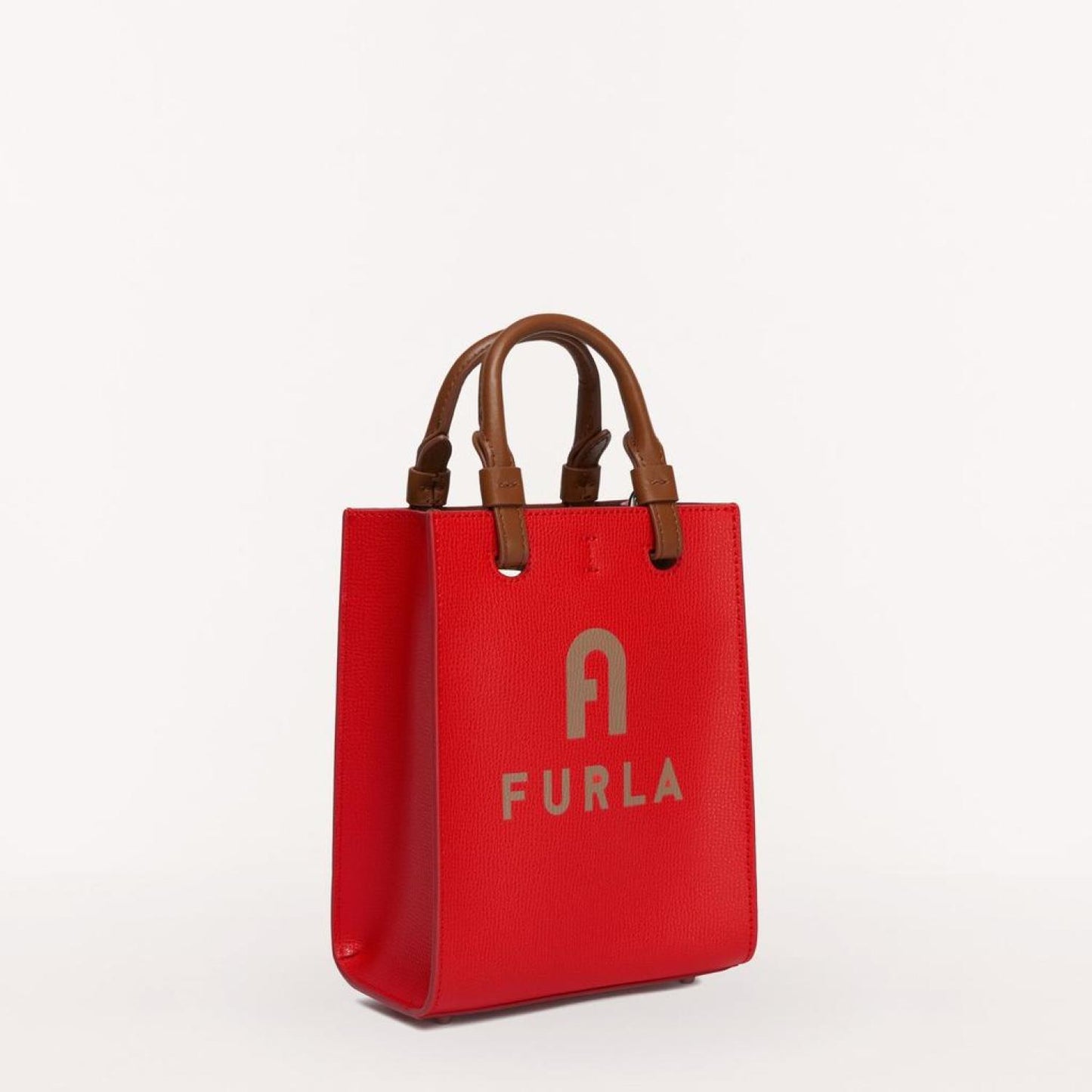 • Furla Varsity Style is a mini shopping bag made from grosgrain leather with a logo pattern. The vertical design is perfect for holding your smartphone and other small personal belongings such as your wallet or lipstick. The double-handle accessory also features an adjustable and removable strap with a leather section, which allows it to be comfortably worn as a shoulder bag or as a crossbody bag. - Open inside pocket- Furla lettering and Arch logo pattern on the front- Galvanised silver-grey finishes Dimensions 6.3 x 7.87 x 3.54 (w x h x d)