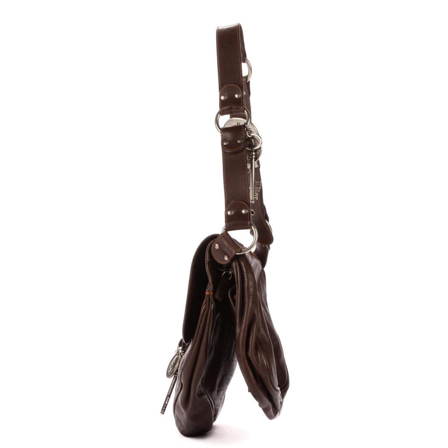 Dior Shoulder bag in Brown Calfskin leather and Gunmetal hardware. Dimensions - 30*27*9cm. Serial number - 05-MA-1006. Inclusions - Dustbag.