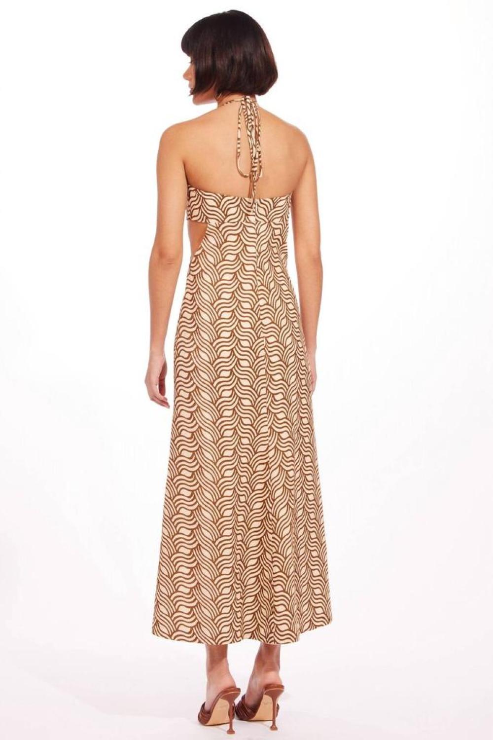 • The perfect length dress does exist.This lightweight cotton maxi dress features a halter neckline that ties in the back and a hidden back zipper, side cutout and gathering in the front. Hidden back zipper. Halter neckline with self tie closure. 100% Cotton. Lining - 100% Polyester.