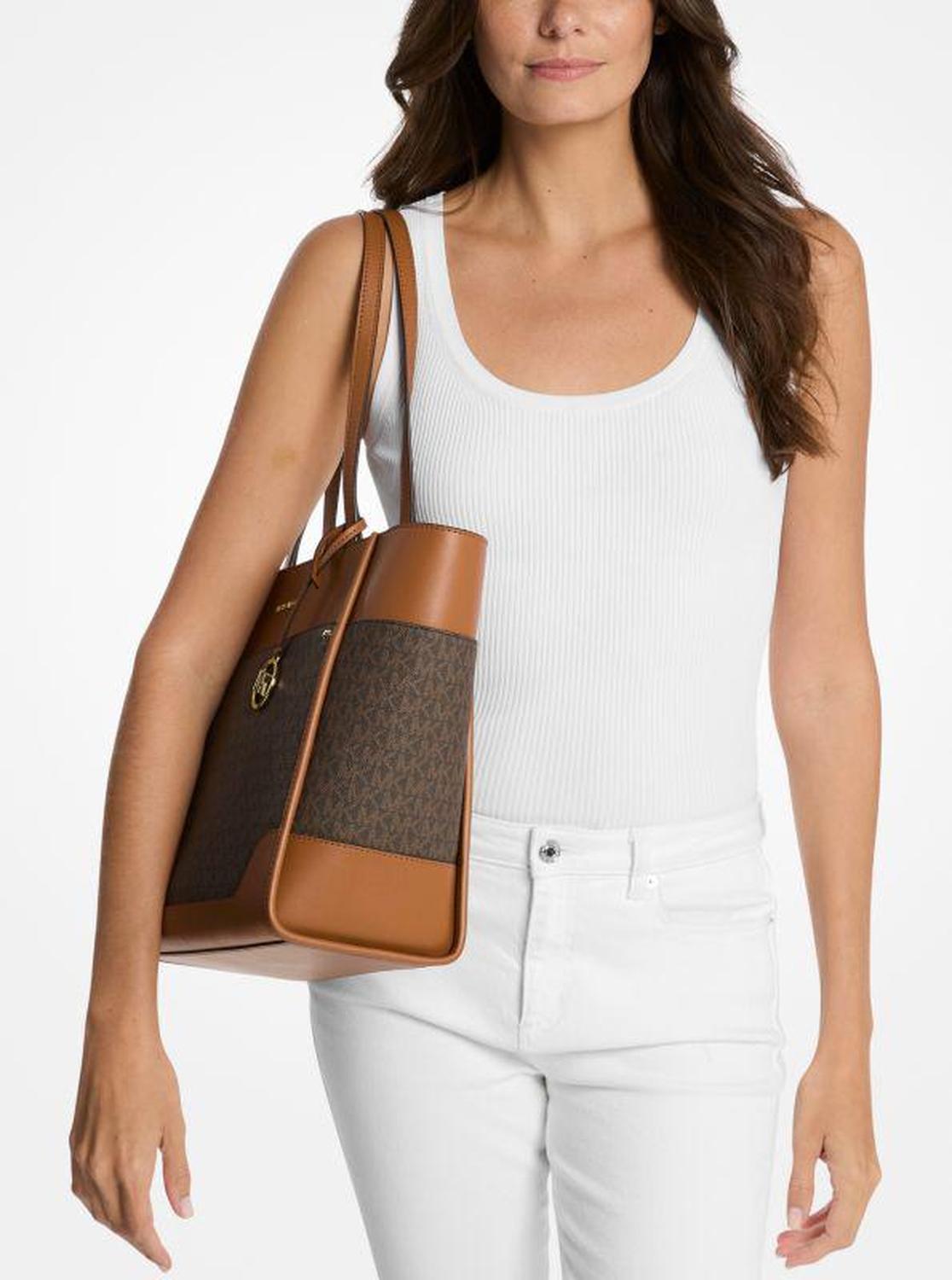 • Timeless and versatile, the Harrison tote is the kind of bag you’ll carry for years to come. It’s made from Signature-print canvas that’s minimally detailed with our logo charm and polished hardware. Sized to hold a laptop and other workday essentials, it’s the perfect companion on your daily commute.