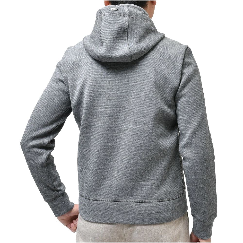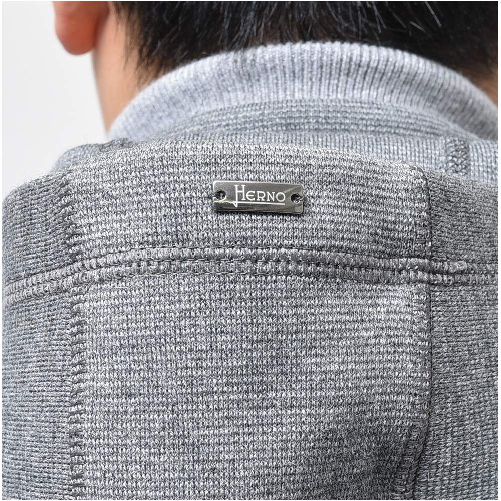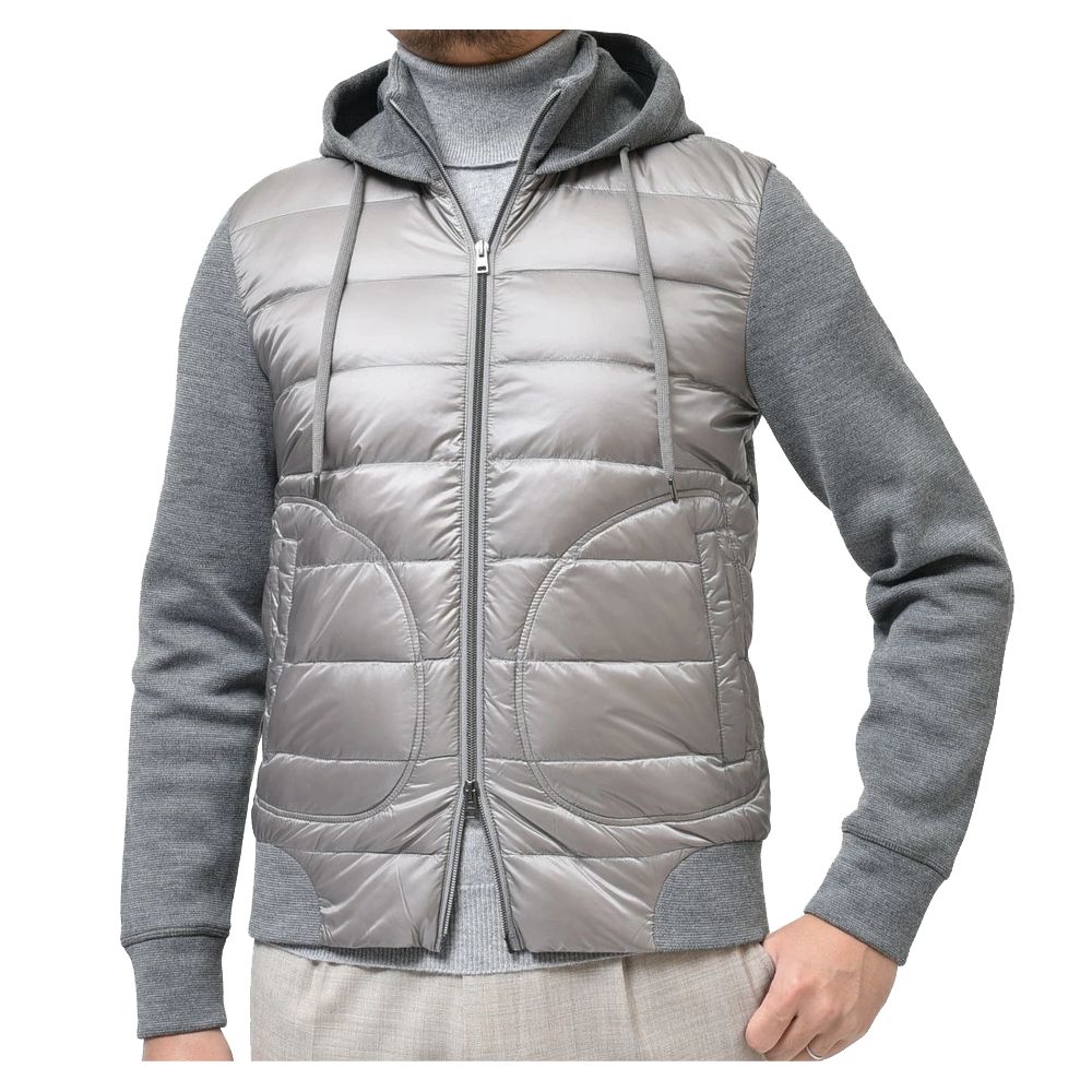 Herno short down jacket with ribbed wool knit parts, goose down padding, hood with drawstring, zip fastening and two front pockets