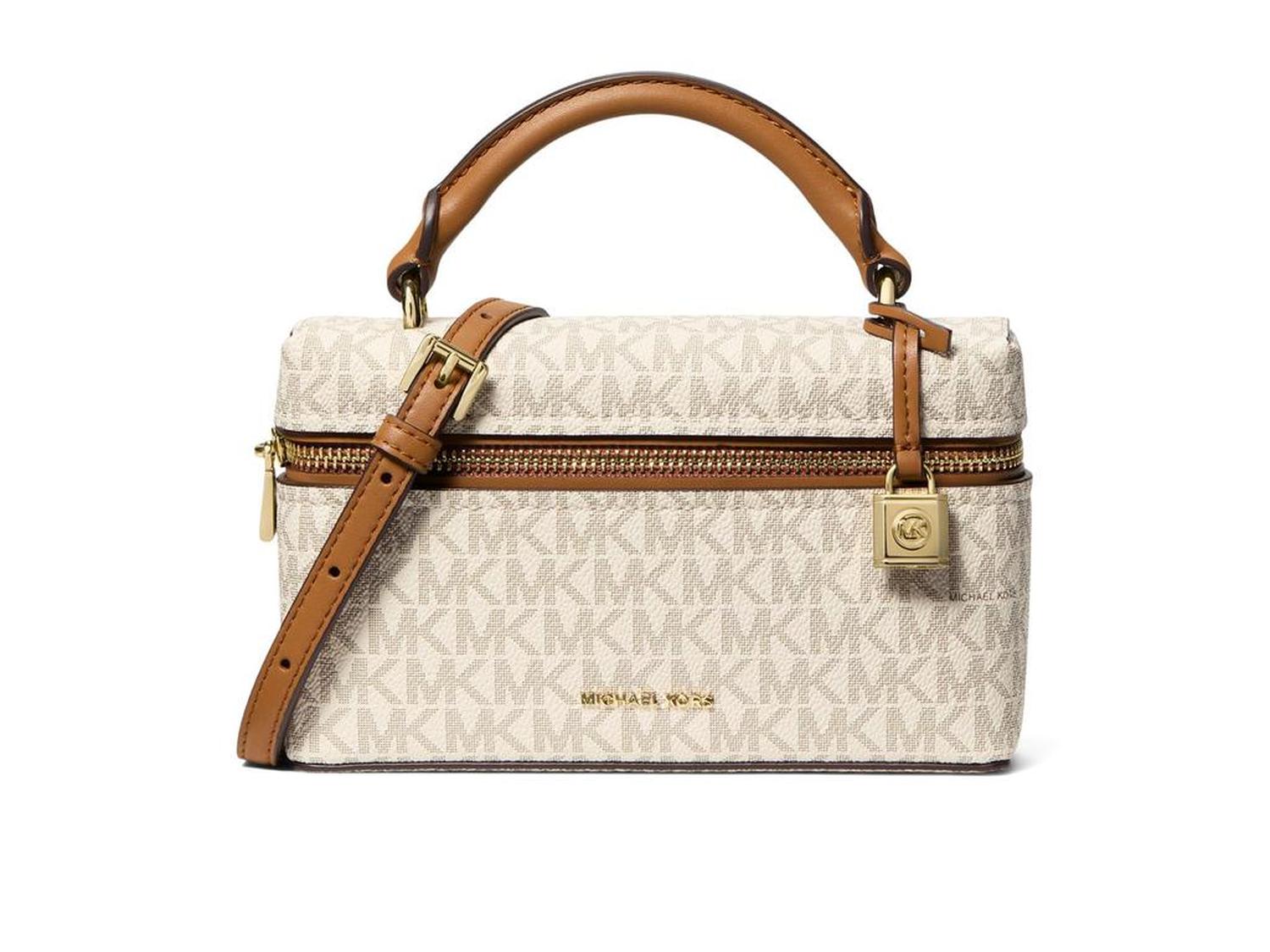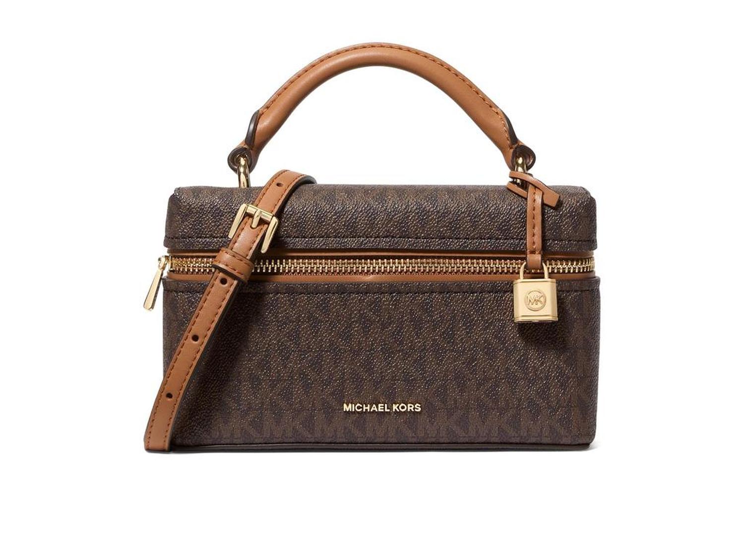 • MICHAEL Michael Kors® Jana Extra Small Top Handle Xbody brings effortless elegance to your everyday. Constructed from logo-print polyvinyl chloride material, this trendy crossbody bag offers a zippered top closure to keep your essentials safe. With a structured top handle and a detachable and adjustable crossbody strap, this bag effortlessly combines style and functionality.