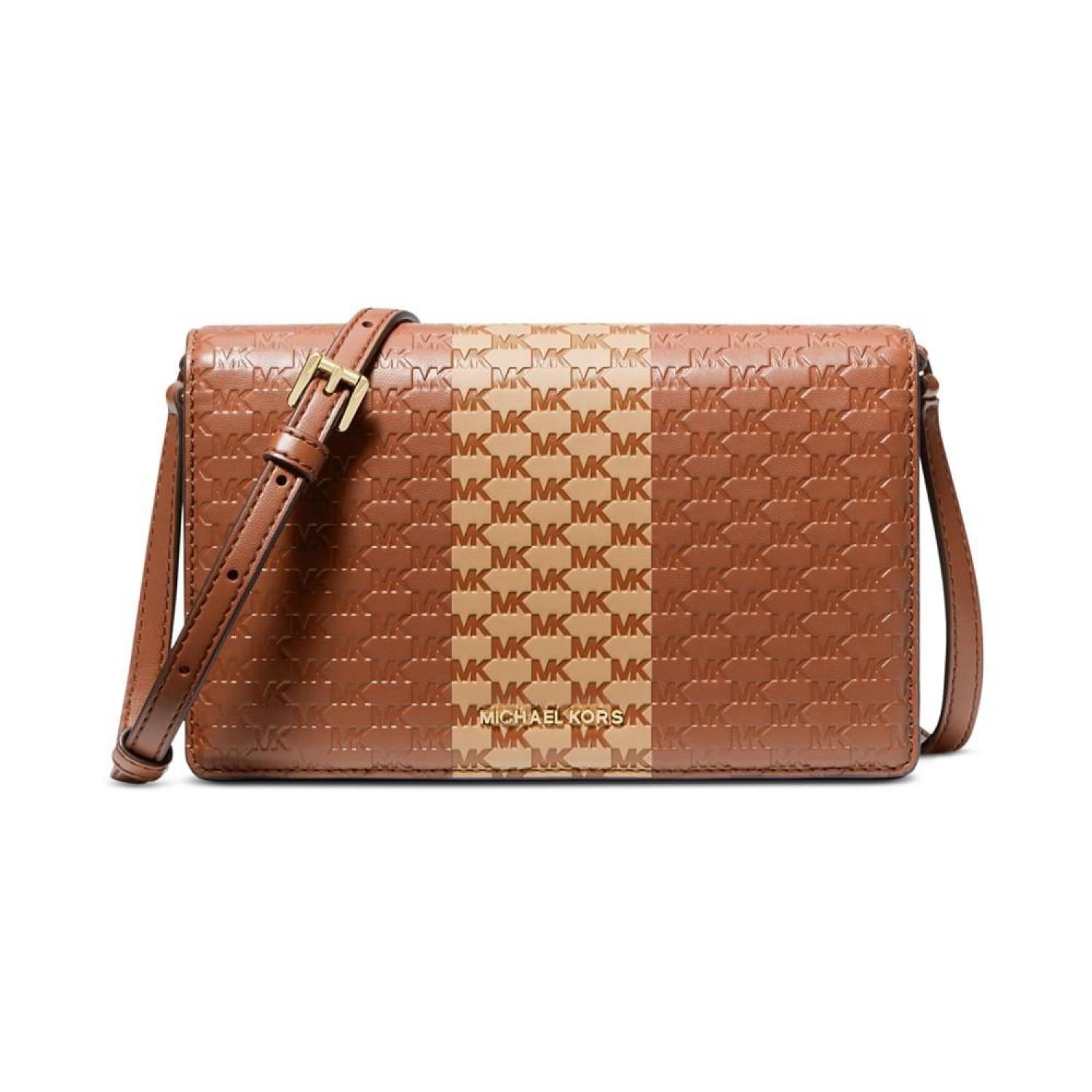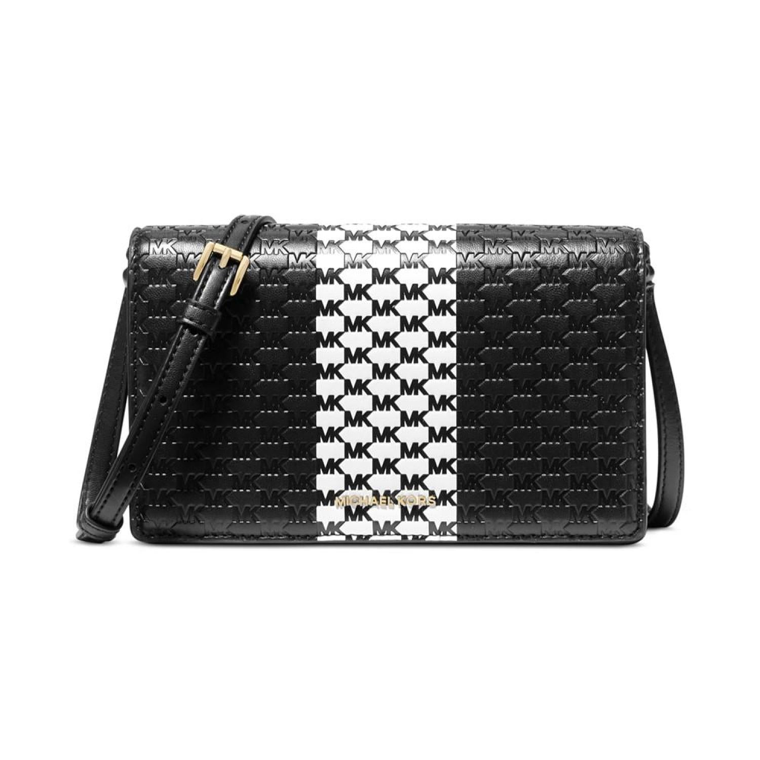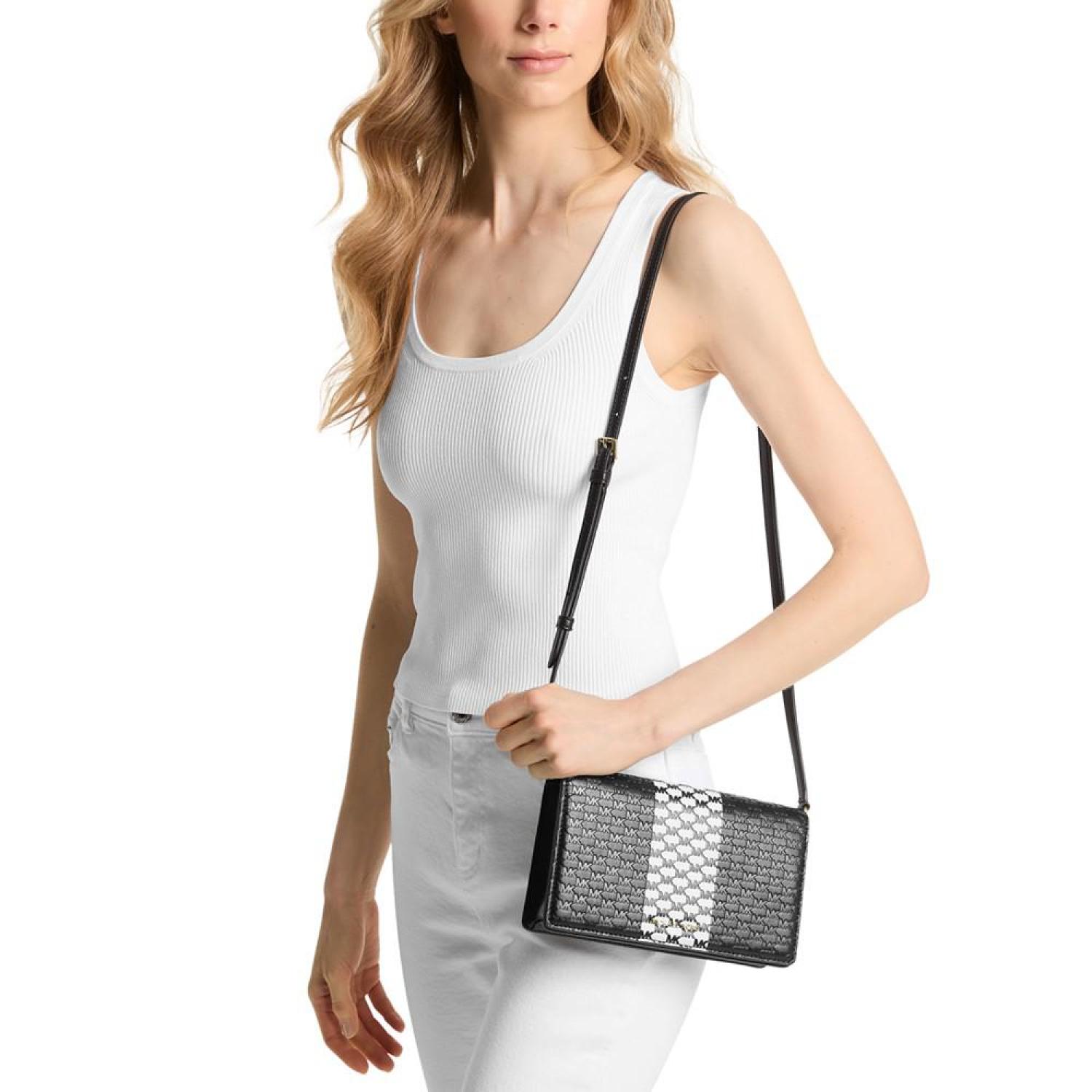 • A glamorous take on an everyday accessory, the Jet Set bag from MICHAEL Michael Kors features a woven exterior and high-shine details.