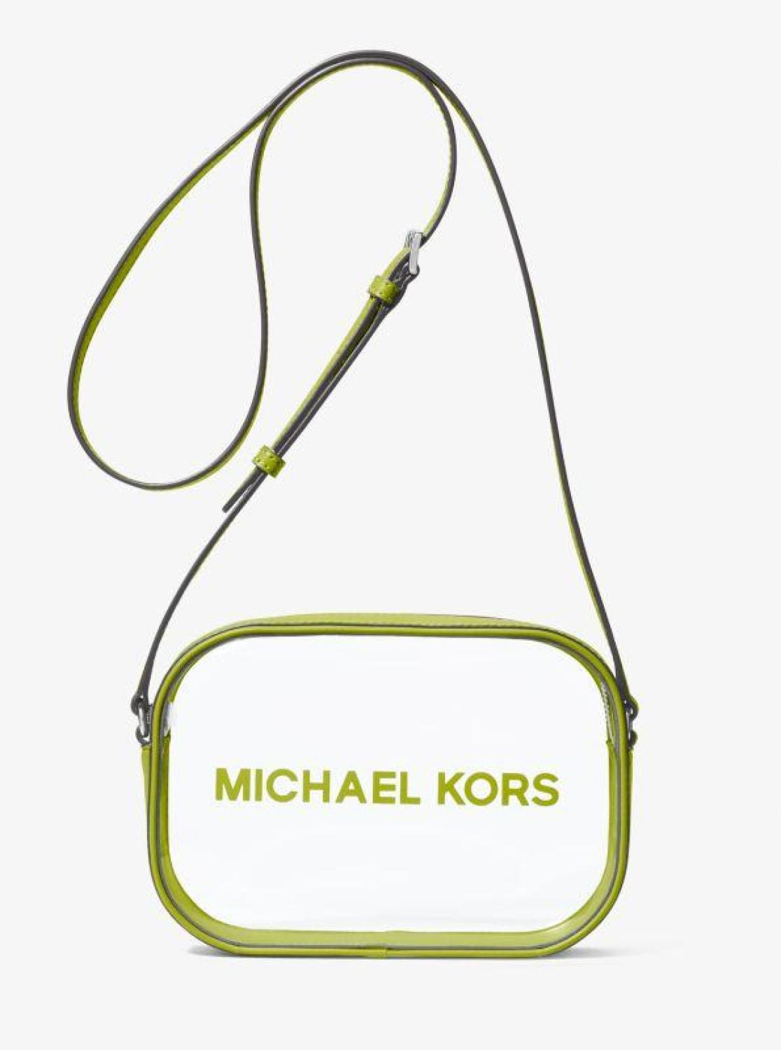 • The Jet Set Travel camera bag is sporty and sleek in a streamlined shape crafted from clear vinyl with smooth trim. Complete with an adjustable crossbody strap, this grab-and-go style is perfect for busy weekends or a fun outing.