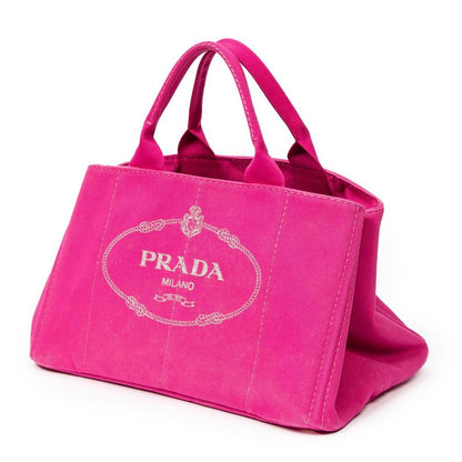 Prada Handbag in Fuchsia Canapa Canvas and Gold hardware. Dimensions - 40*24*25cm. Serial number - 158. Inclusions - None.