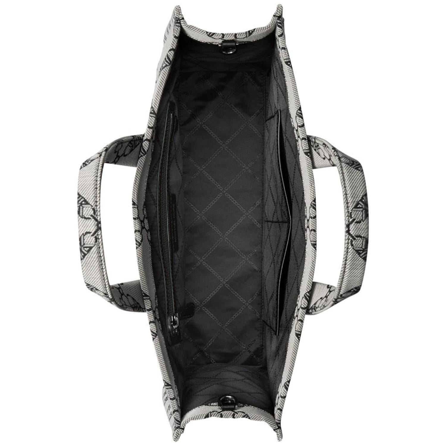 Add refinement to your everyday organization with the Gigi Monogram Large Grab Tote by MICHAEL Michael Kors. Large sized bag; 15-1/2"W x 11-3/4"H x 5-1/4"D (width is measured across the bottom of handbag); 1.84 lbs. approx. weight Silhouette is based off 5'9" model 4-1/2"L handles; 12-3/4"L - 21-3/4"L removable, adjustable strap Open top Hardware tone varies by color & exterior slip pocket Interior zip & slip pockets Cotton, polyester; lining: cotton; trim: cotton, polyester, polyurethane Spot clean Imported