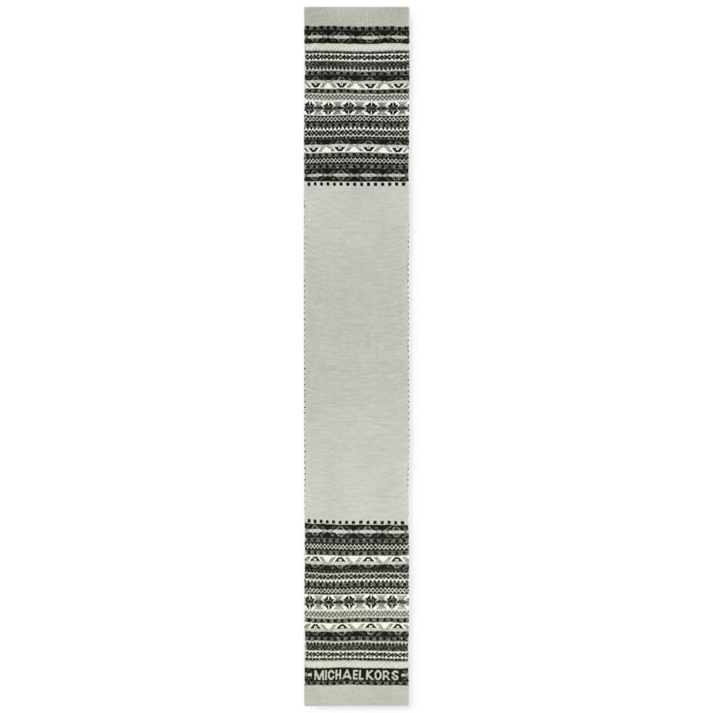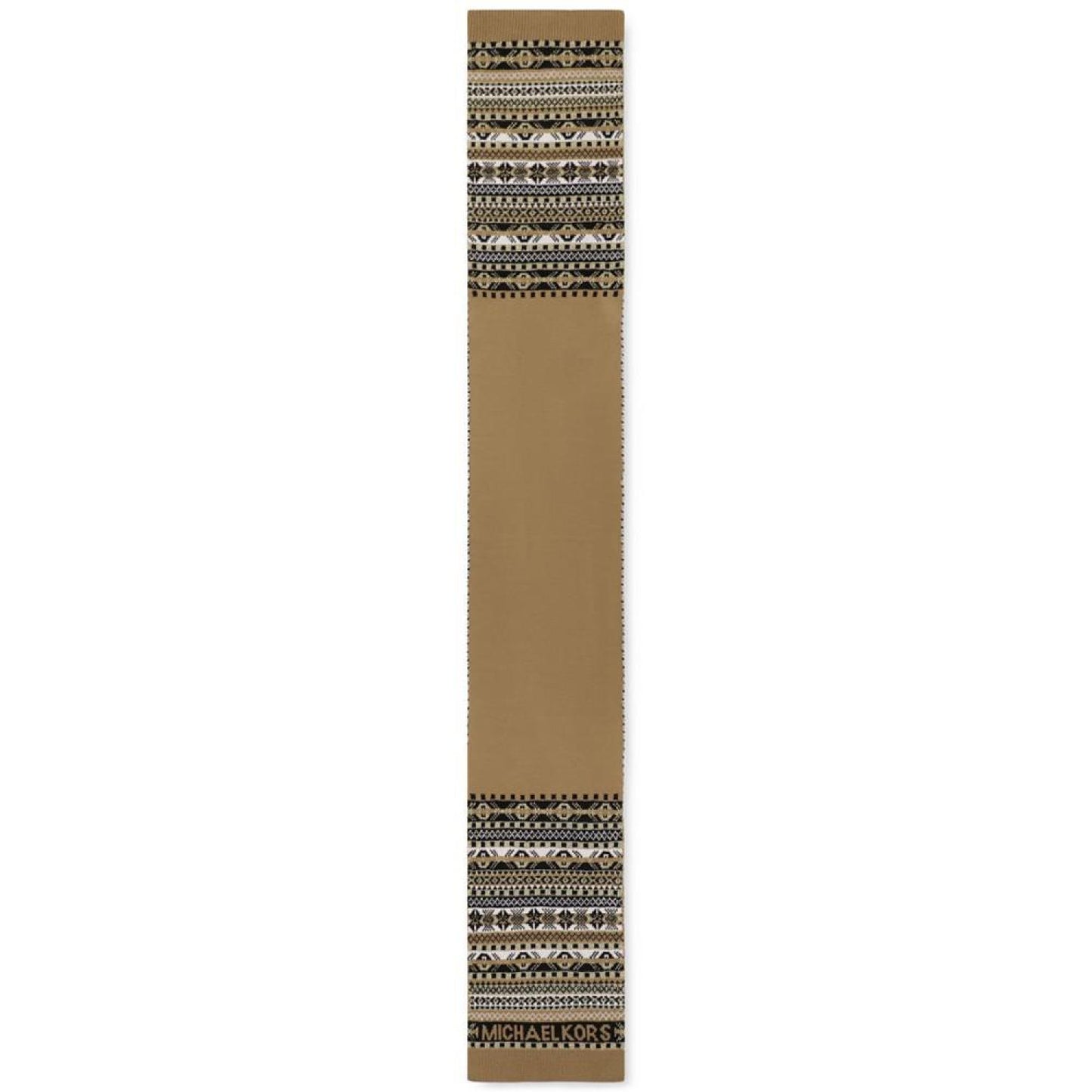 Classic style and coziness, this MICHAEL Michael Kors' Fair Isle scarf is long enough to wrap around several times for extra warmth. Dimensions: 66" x 10"; one size Ribbed edge; Jacquard knit-in logo Complete the look with our matching hradband: 14372794 Acrylic Hand wash Imported