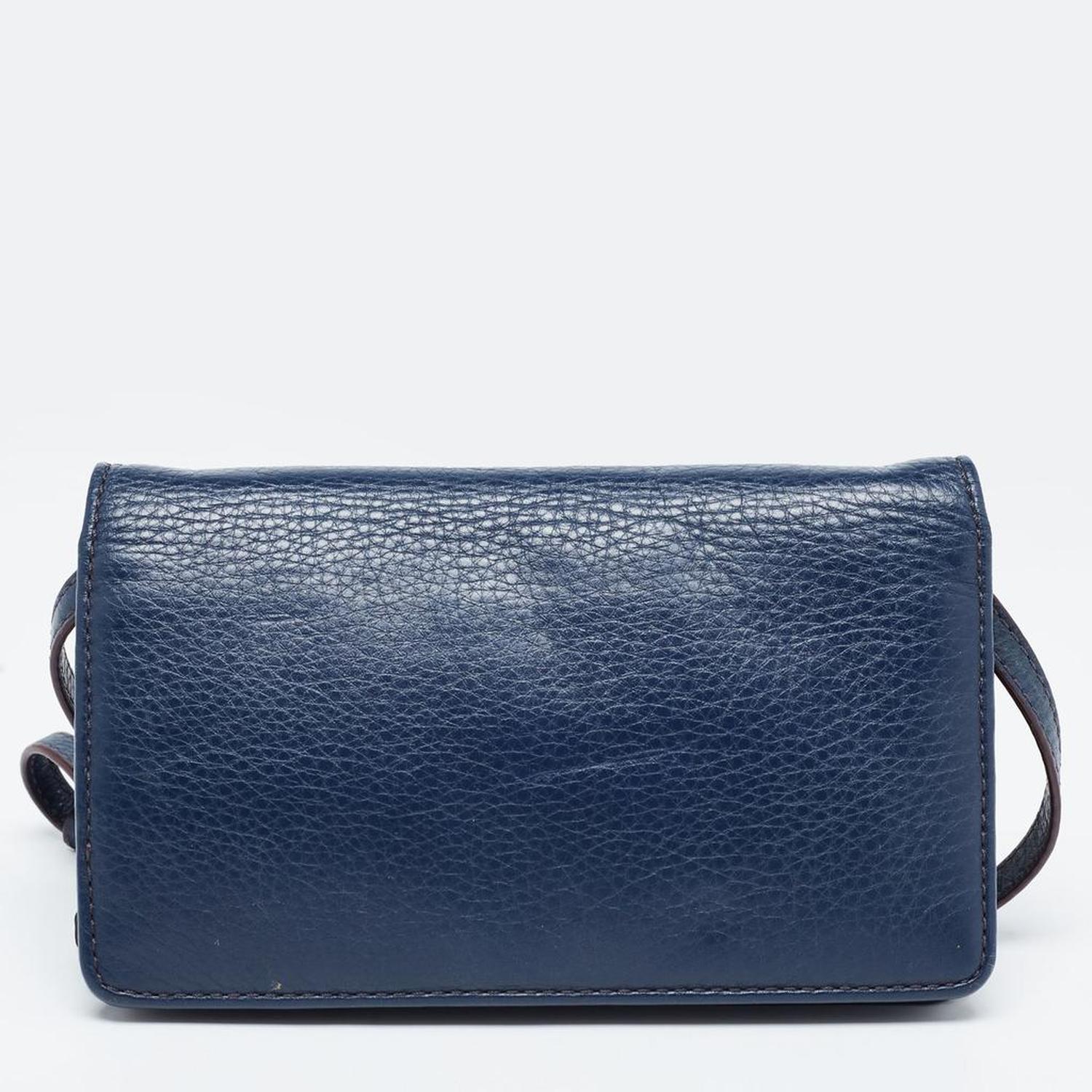 Marc Jacobs Navy Blue Leather Recruit Wallet On Strap