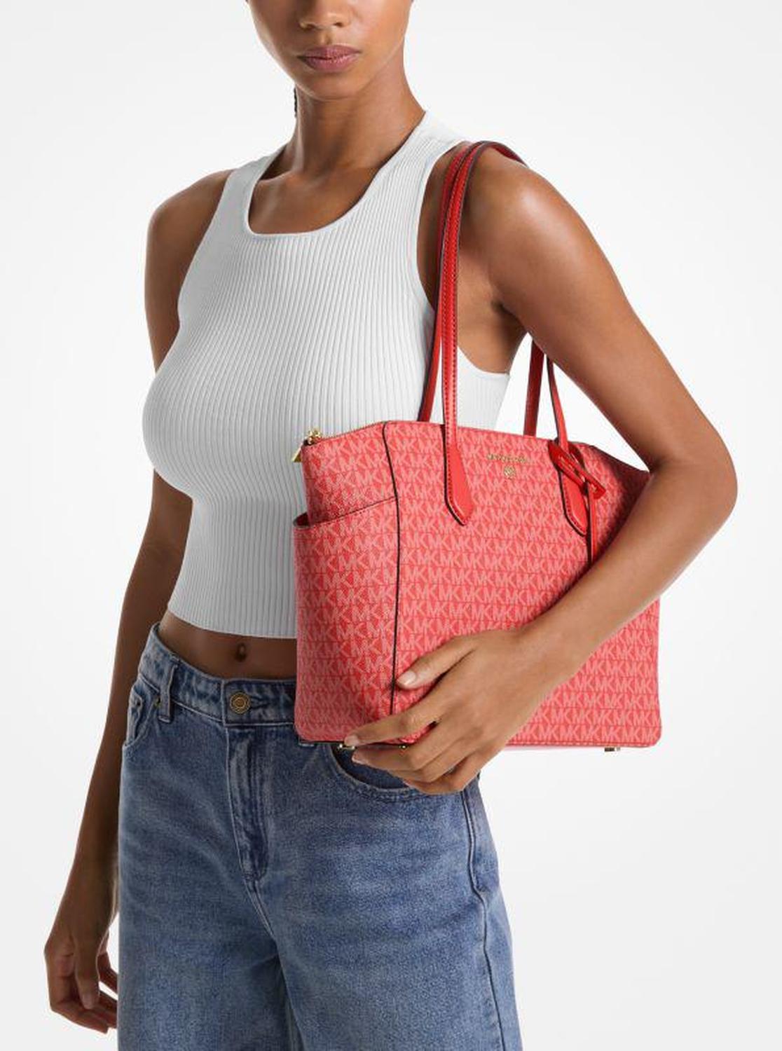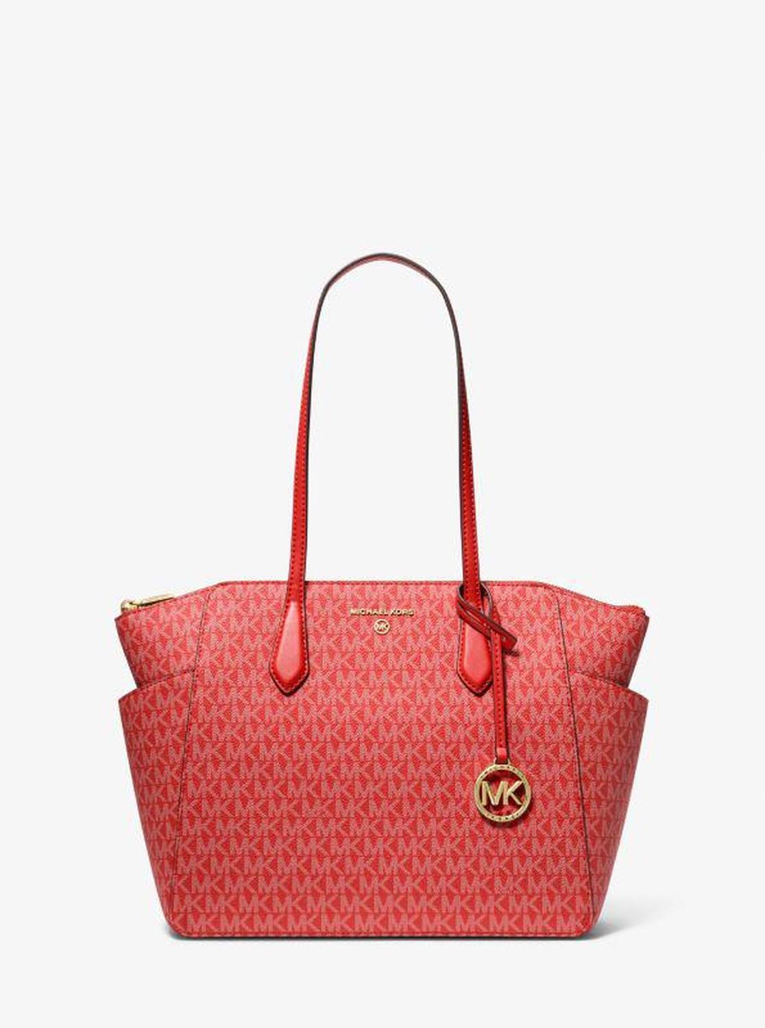 • Our Marilyn carryall is the ultimate tote bag for everyday wear. The brand’s iconic “MK” initials leave a memorable mark, while the structured silhouette unzips to reveal a spacious interior with dedicated pockets for your daily essentials. We love how the slender leather straps easily slip over your shoulder to ensure on-the-go ease.