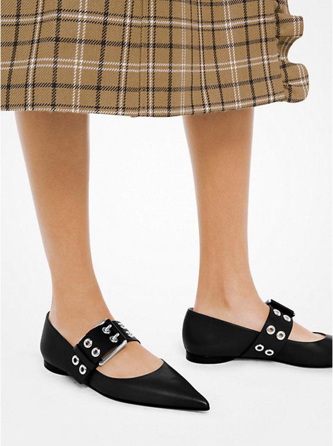 A polished, iconic silhouette with a touch of edge, our Maude Mary Jane flats are crafted from rich calf leather. They feature a wide strap that frames the foot, while its grommeted detailing channels the season’s punk-inflected character. Wear them with cropped denim or the season’s inherently feminine dresses. Made in Italy. • Flat • Calf leather • 100% leather • Lining: 100% leather • Sole: rubber • Point toe • Slip on • Heel height: 0.5" • Heel type: stacked • Made in Italy • Flat • Calf leather • 100% leather • Lining: 100% leather • Sole: rubber • Point toe • Slip on • Heel height: 0.5" • Heel type: stacked • Made in Italy