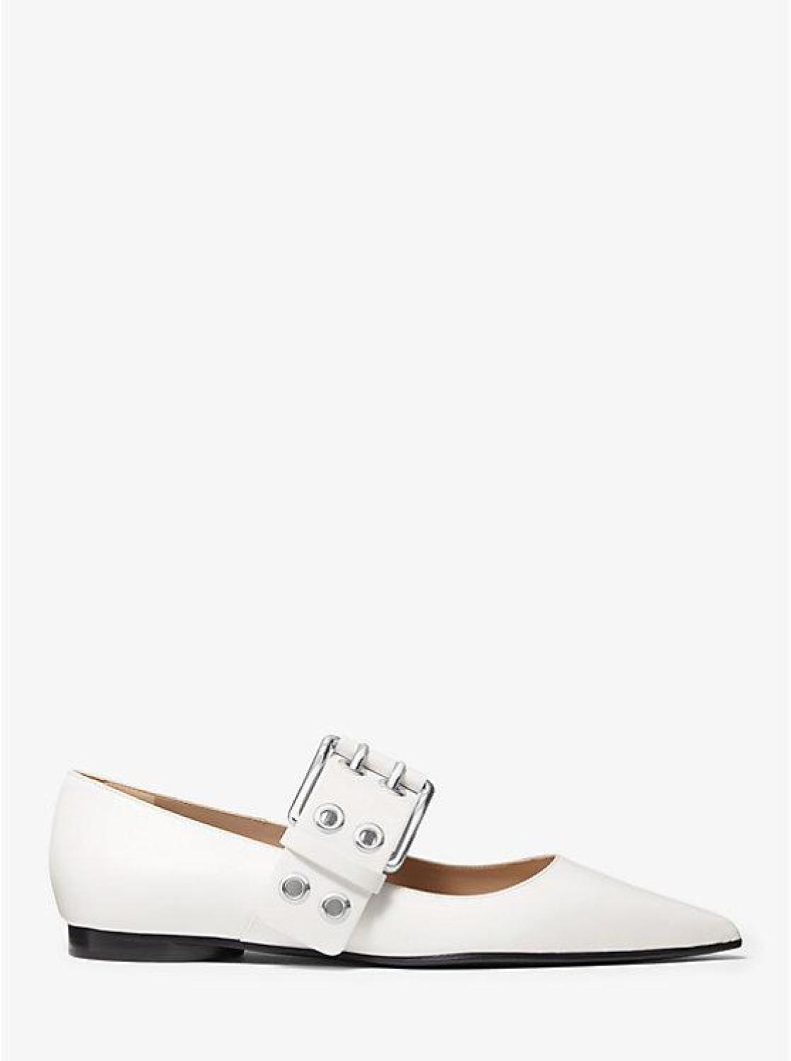 Maude Calf Leather Pointed-Toe Mary Jane Flat
