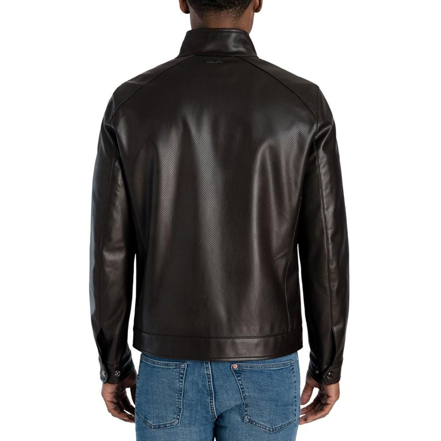 Perforated body panels on this smooth faux leather Michael Kors jacket lend it a subtle, sporty vibe for a look that is unique and modern.