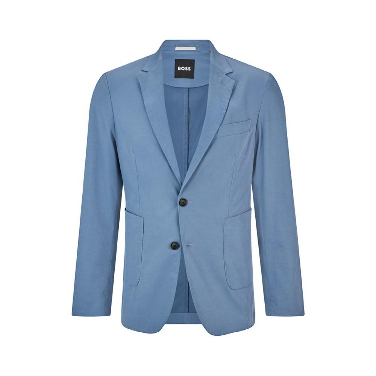 • A single-breasted jacket by BOSS menswear. Crafted in performance material with natural stretch for ease of movement, this modern jacket is tailored to a neat fit for clean and contemporary lines. A special label trims the rear collar.