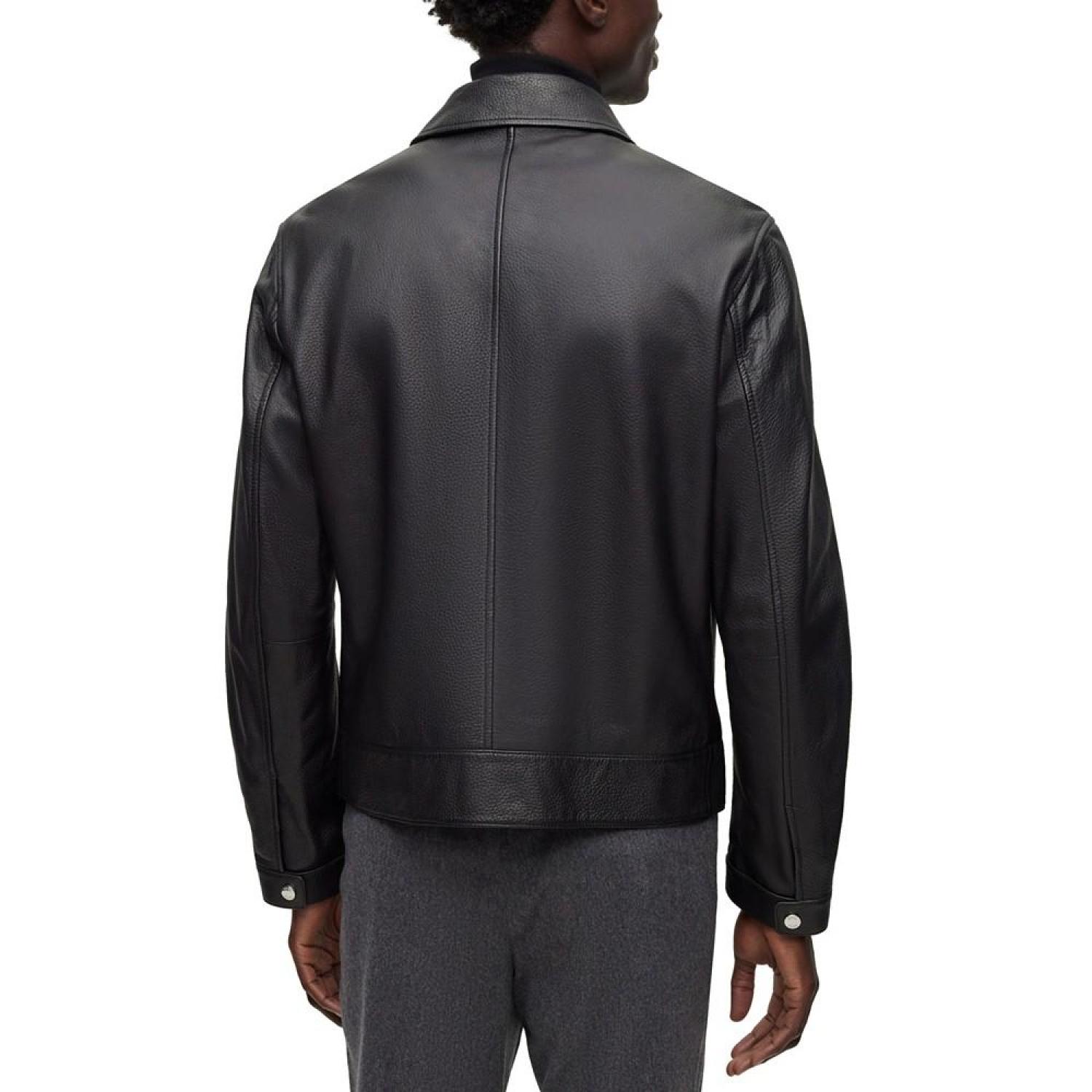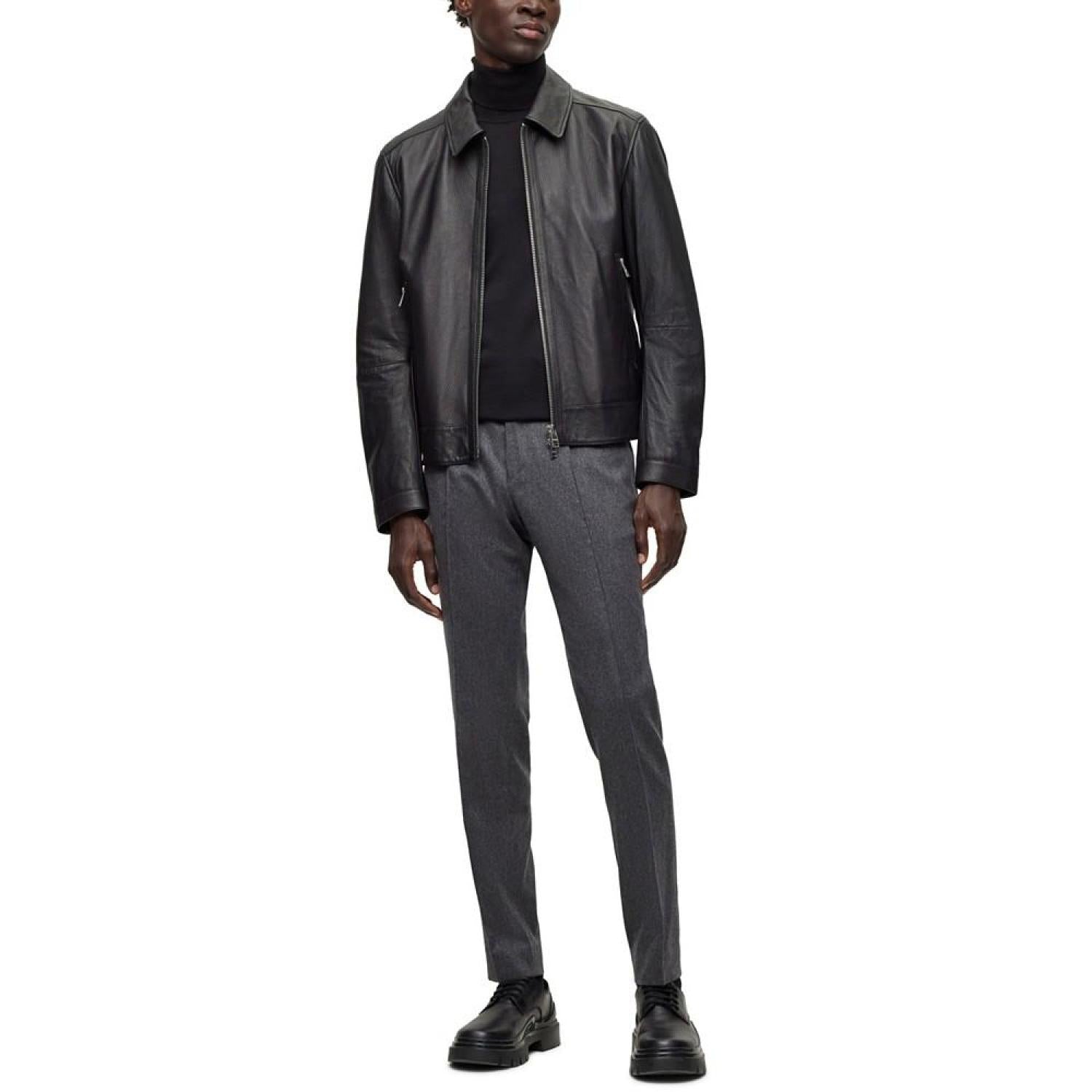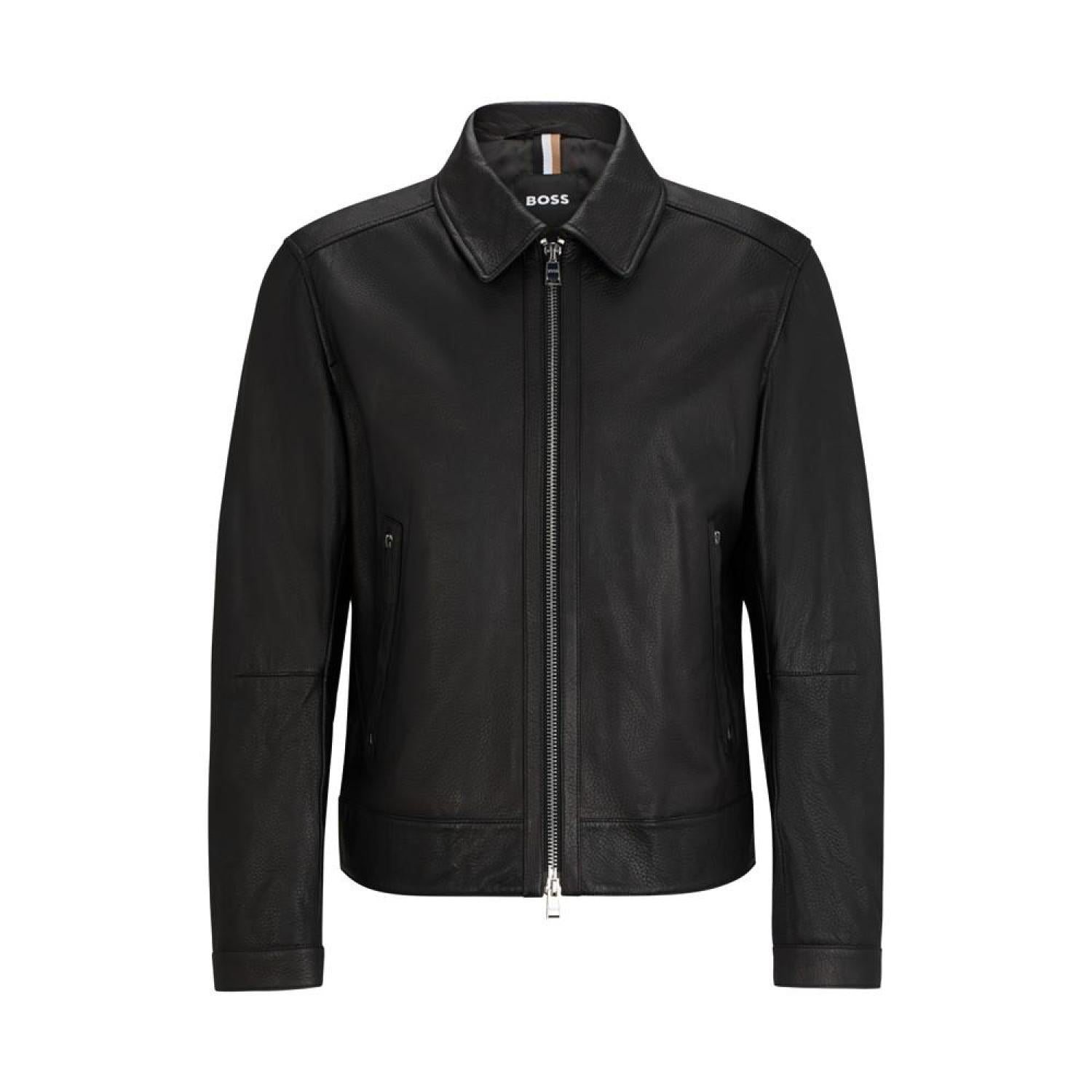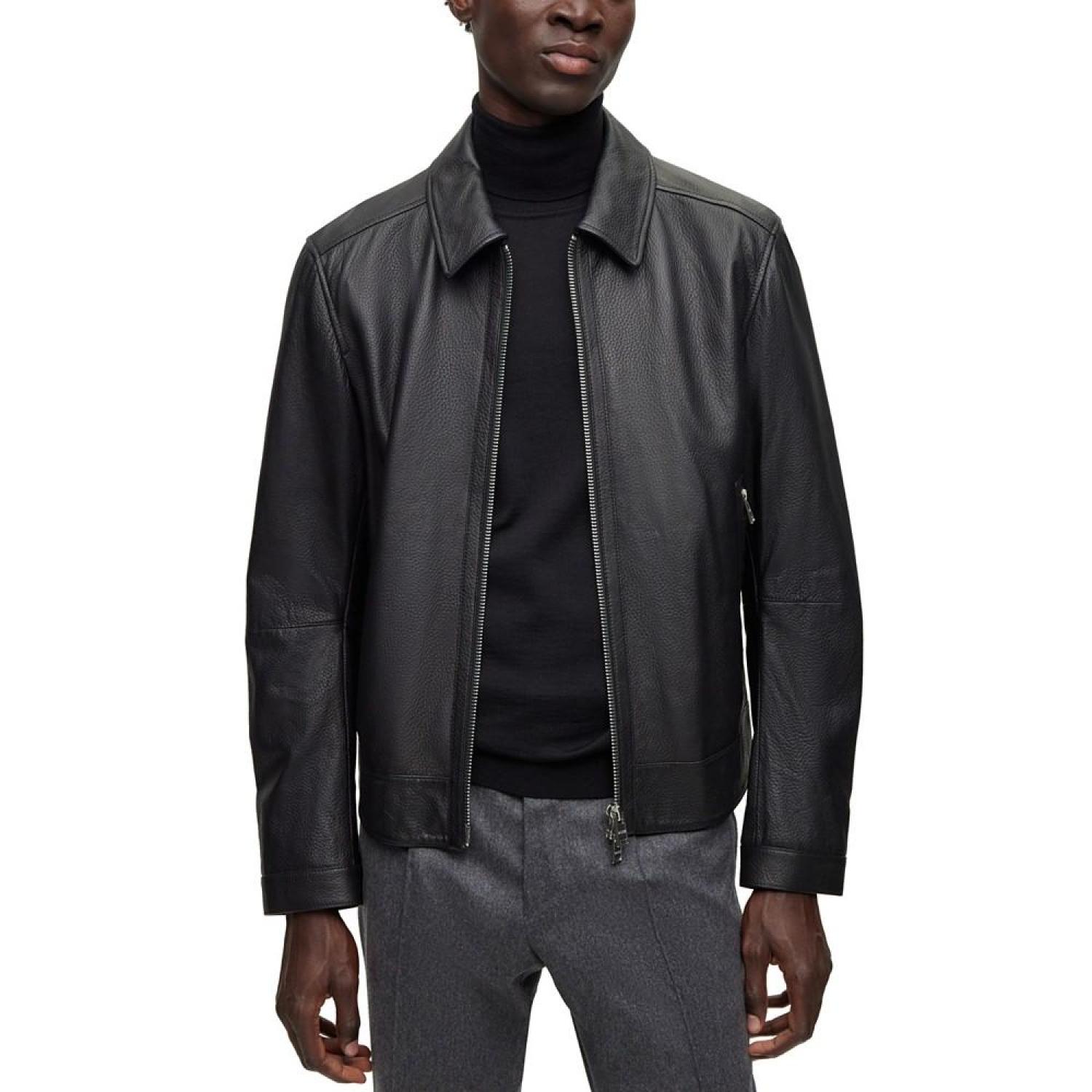 • A modern jacket by BOSS menswear, designed in supple leather with a two-way front zip and a monogrammed lining in smooth fabric.