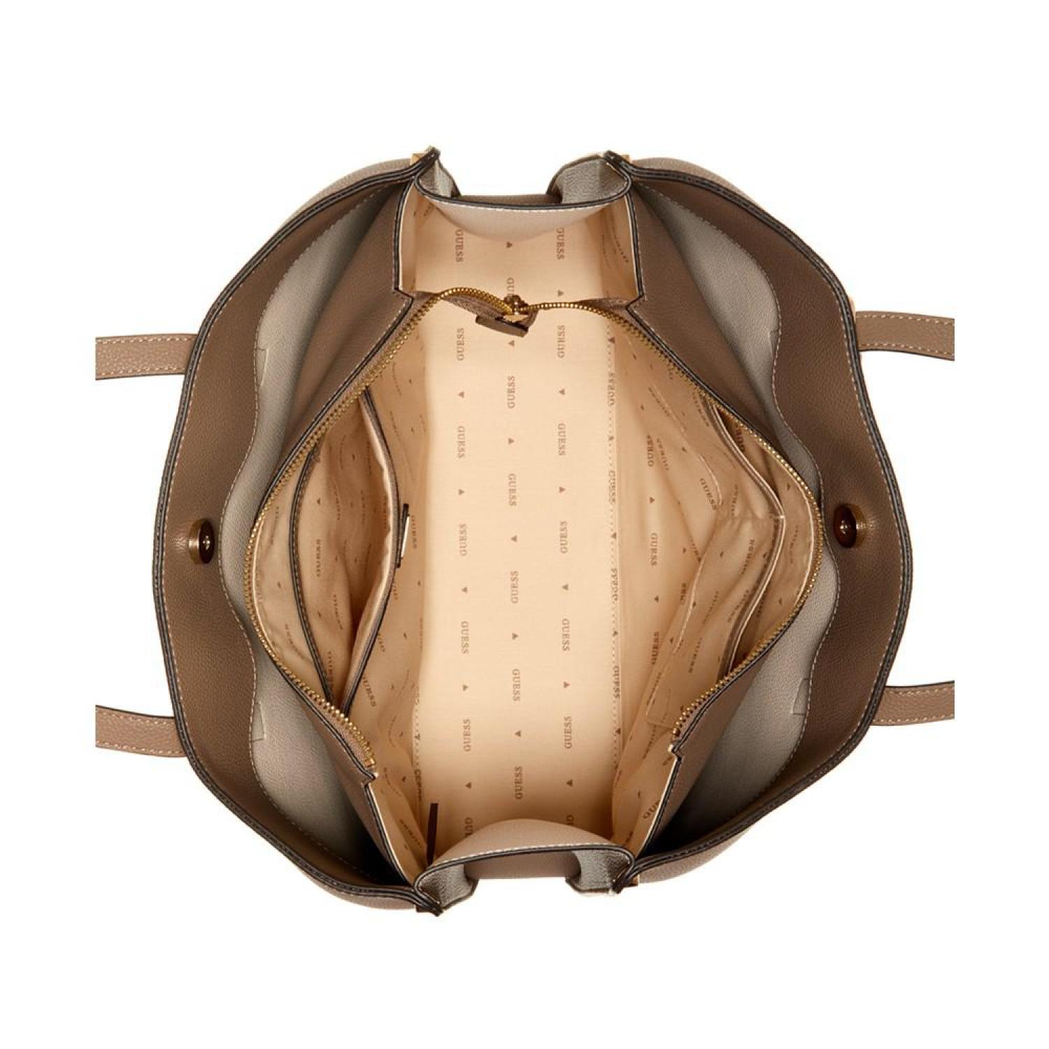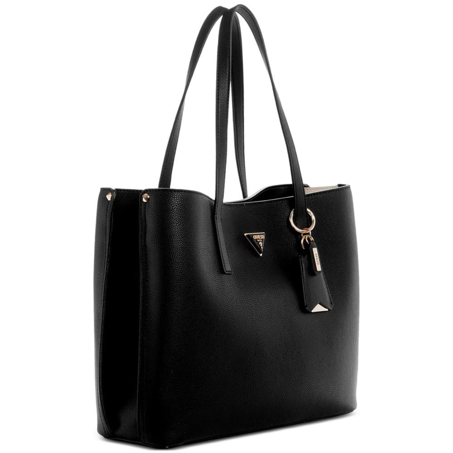 Keeping you organized every day with an array of pockets, the Meridian Faux Leather Girlfriend Tote by GUESS is the ideal companion. Large sized bag; 16-1/2"W x 11-1/2"H x 4-1/4"D (width is measured across the bottom of handbag); 1.94 lbs. approx. weight Silhouette is based off 5'9" model 9"L shoulder straps Magnetic closure Shiny gold-tone hardware Triple compartment interior with center zip compartment & zip & slip pockets Polyurethane Spot clean Imported