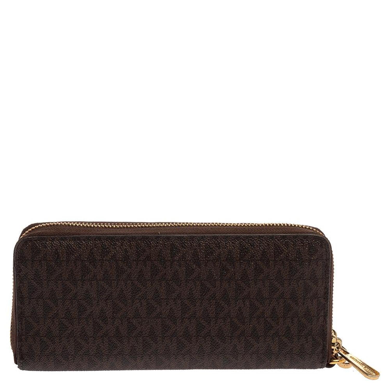 Michael Kors Brown Monogram Coated Canvas Zip Around Wristlet Wallet