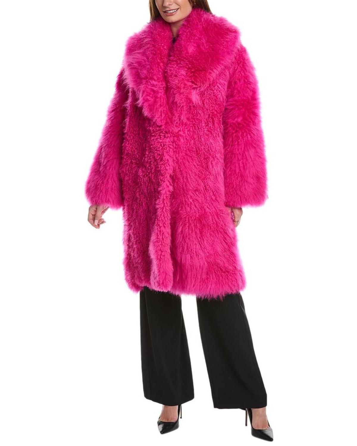 Introducing the luxurious and glamorous Michael Kors Collection Shawl Collar Shearling Balmacaan in fashionable fuchsia. This exquisite outerwear piece is a true testament to the brand's commitment to all-American styles that effortlessly exude glamour and a luxurious lifestyle.Crafted with utmost precision and attention to detail, this shawl collar leather balmacaan showcases the impeccable craftsmanship that defines the Michael Kors Collection. The stunning fuchsia hue instantly adds a pop of vibrant color to your winter wardrobe, making it the perfect statement piece for any fashion-forward woman.Designed for the modern woman, this balmacaan is versatile and flattering. The model featured is 5'10' and is wearing a size [insert size]. Please note that measurements may vary slightly by size, ensuring a perfect fit for all body types.Made from 100% goat shearling, this jacket offers unrivaled warmth, comfort, and style. The use of high-quality materials ensures longevity, allowing you to enjoy this coveted piece for years to come.To maintain the pristine condition of this shearling balmacaan, we recommend cleaning it by a leather and fur expert. This will ensure that the jacket retains its softness, texture, and luster.Embracing the global appeal of the Michael Kors brand, this Shawl Collar Shearling Balmacaan is imported, bringing international sophistication to your wardrobe.Elevate your outerwear game with the Michael Kors Collection Shawl Collar Shearling Balmacaan in fuchsia. Experience the luxury and easy glamour that defines the iconic Michael Kors brand.