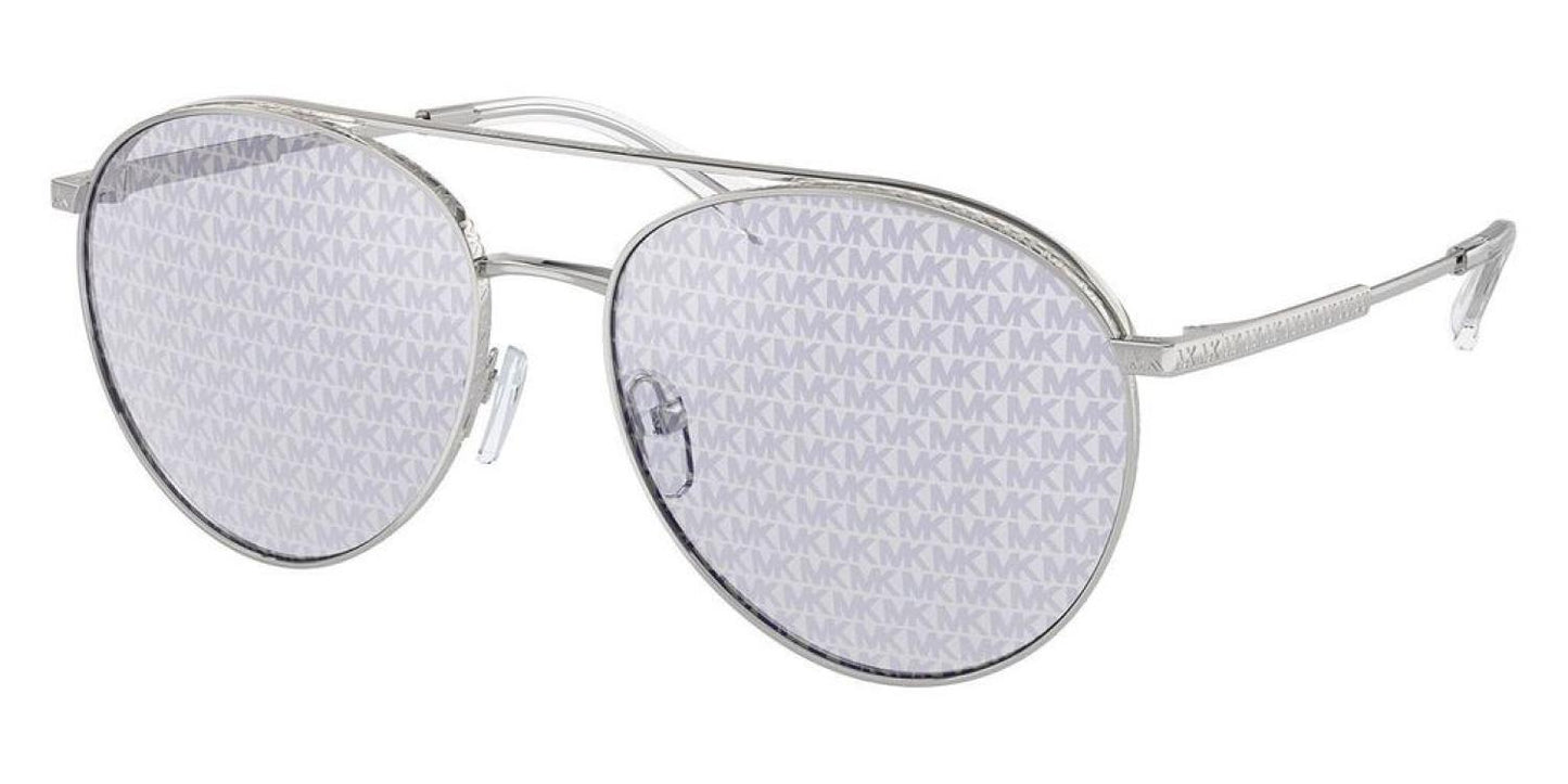 Dimensions - 58 mm x 16 mm x 145 mm. Frame Color - Silver. Frame Shape - Aviator. Frame Material - Metal. Lens Color - Silver Mk Block Repeat Mirror. 100% UV Protection, Non-Polarized. (MK1138-1153R0-58)