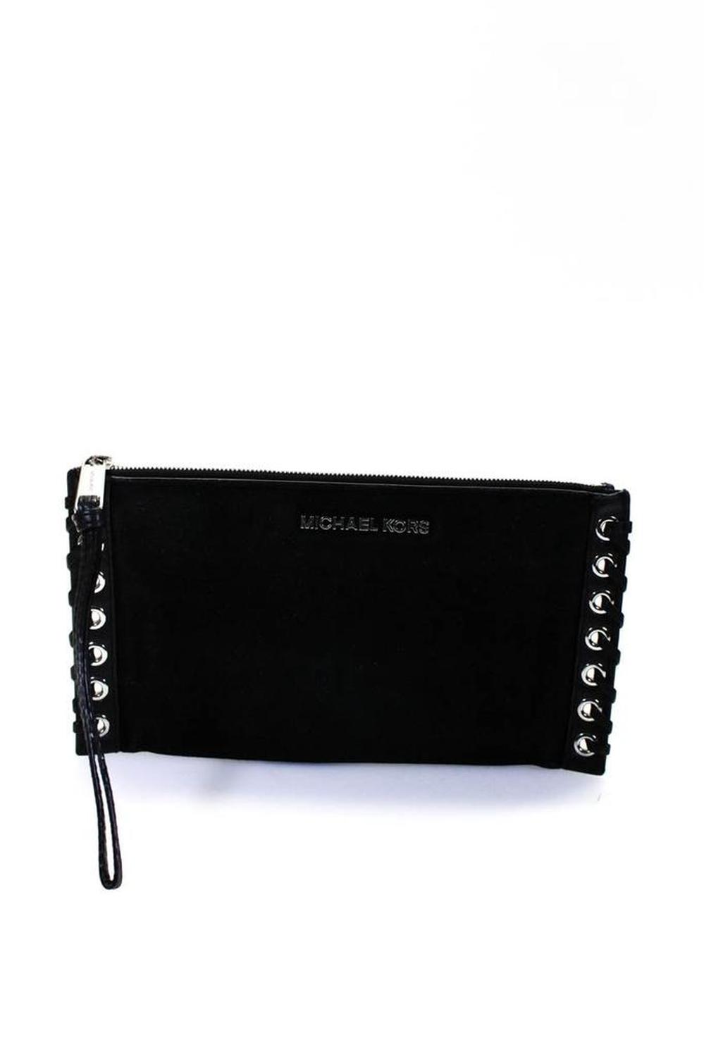 Michael Kors Women's Suede Leather Zip Clutch Handbag Black