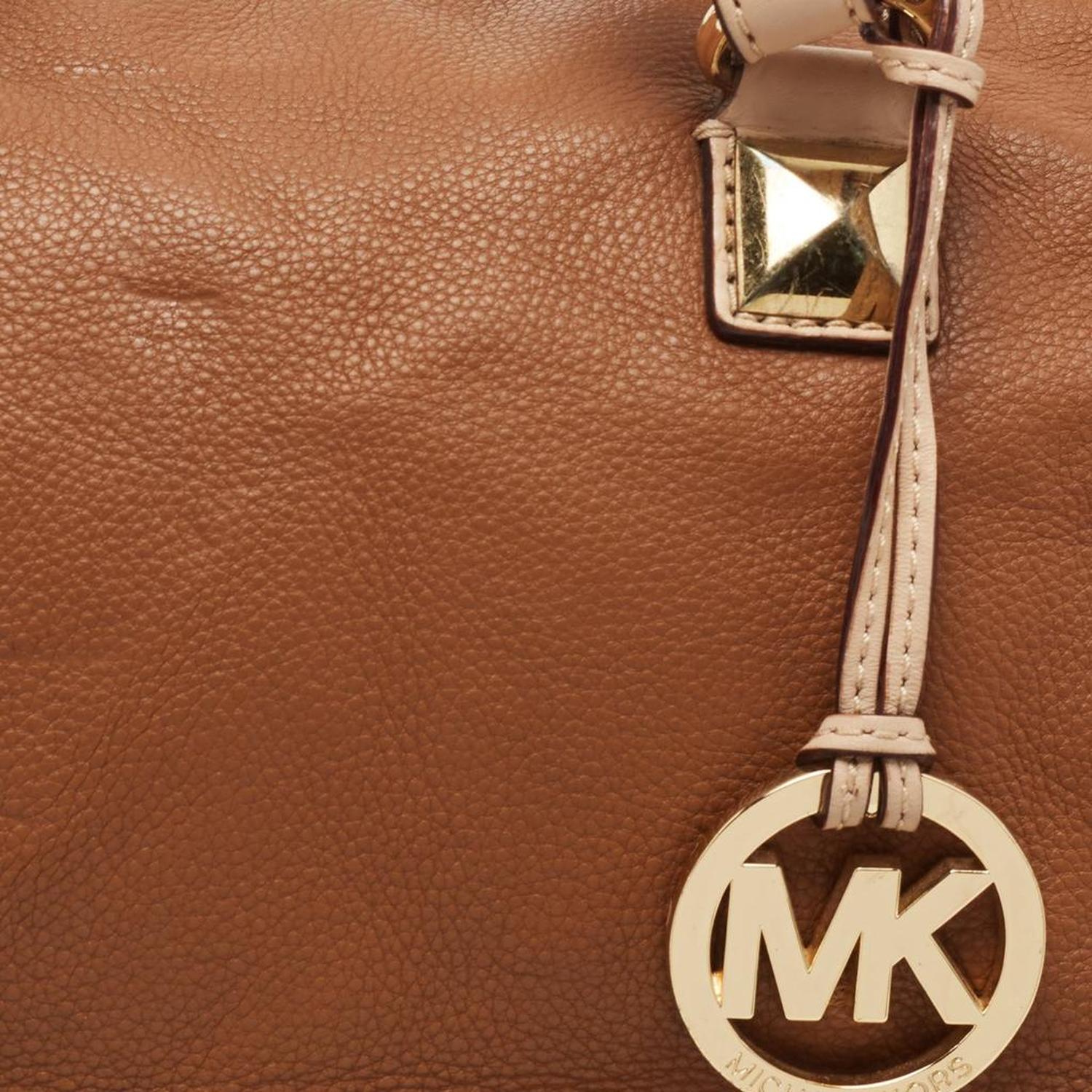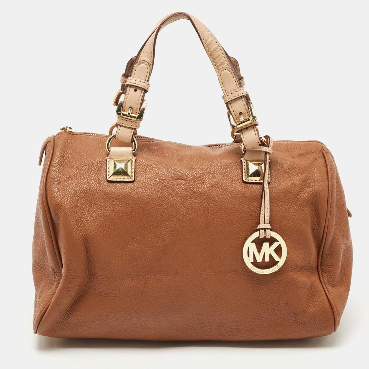 Ideal for daily use this MICHAEL Michael Kors Boston bag is easy to style. Made from brown leather it features dual top handles a shoulder strap and a spacious interior. The branded charm at the side offers the bag a recognizable sign off.