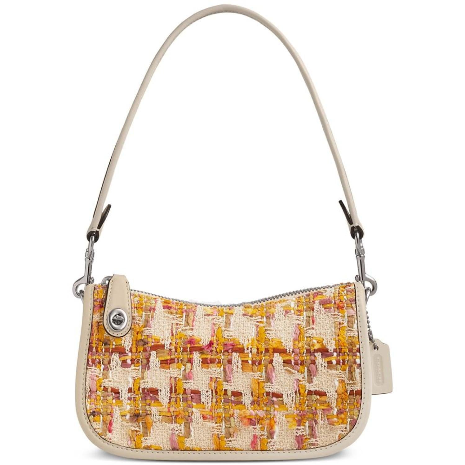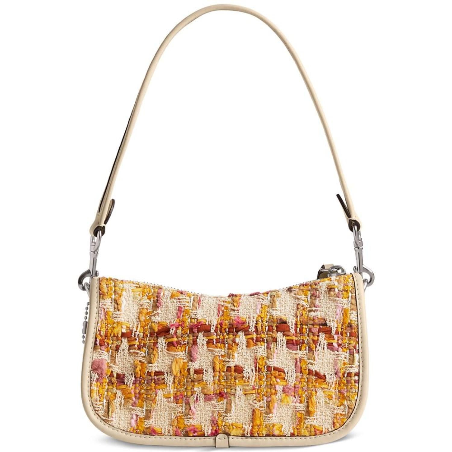 Crafted in classic tweed with leather trims, this handbag by COACH features a zippered closure and a removable handle for versatility.