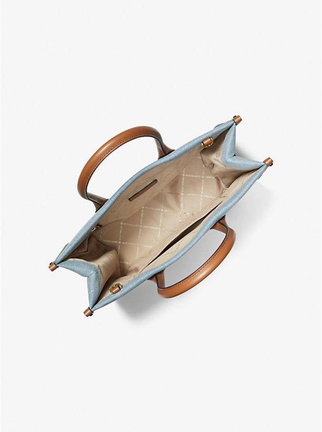• Whether you’re heading to a daytime event or simply running errands, the Mirella will meet the moment. Fit a day’s worth of essentials and a makeup bag in this tote, which can be carried by the top handles or worn cross-body thanks to a removable strap. Crafted from denim and embroidered with our brand lettering, it’s a reliable way to add polished charm to any outfit.