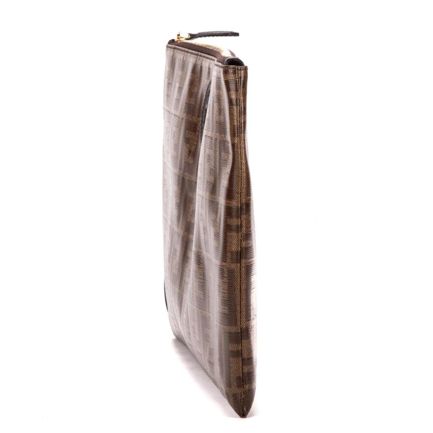 Fendi Pouch in Brown Monogram Canvas and Gold hardware. Dimensions - 34*22cm. Serial number - 8N0156.A5K4.208.0333. Inclusions - Dustbag.