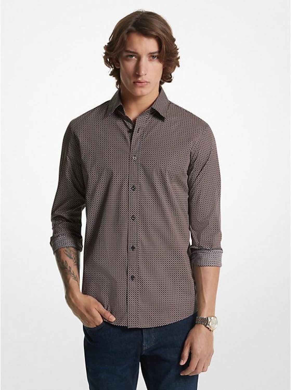• Whether you’re headed to after-work cocktails or need a polished option for your next trip, this button-down shirt is an ideal choice. Featuring an allover mosaic print that creates a textured effect, it’s crafted from cotton with just a hint of stretch for a perfect fit.