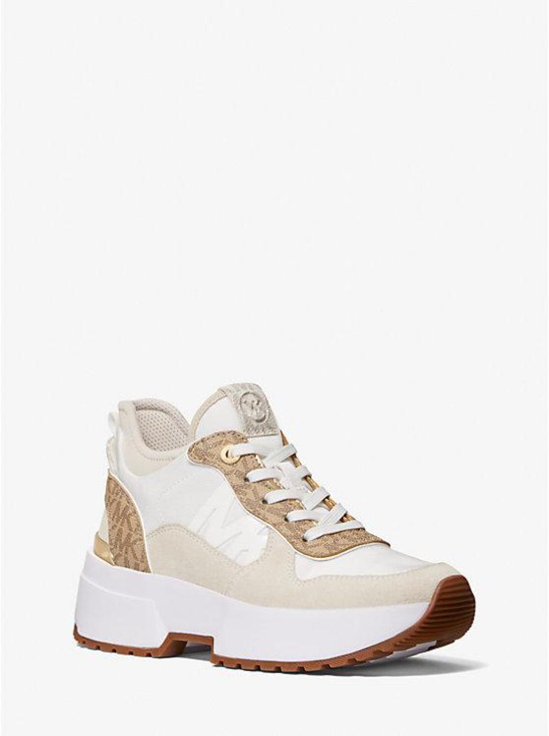 • The Muse trainer will deliver instant personality to every step. A cool mix of mesh, Signature-print canvas and smooth accents combine to give this sneaker a sporty yet luxe finish, while its chunky rubber soles provide more lift than the average pair. A dress or casual-cool denim is all you need to create a winning look.